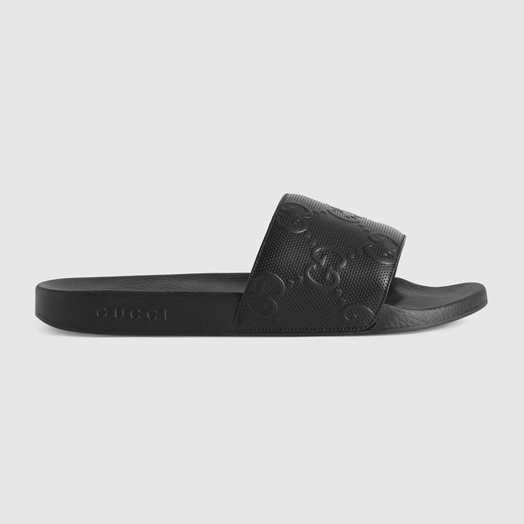 Style 681880 UKU00 1000 This pair of slide sandals is Crafted from black Demetra With an allover GG motif. Created With The same processes used For tanning, The New material offers pliable and resilient performance With a supple finish. The eco-friendly material combines animal-free raw materials primarily from sustainable, renewable, and bio-based sources.