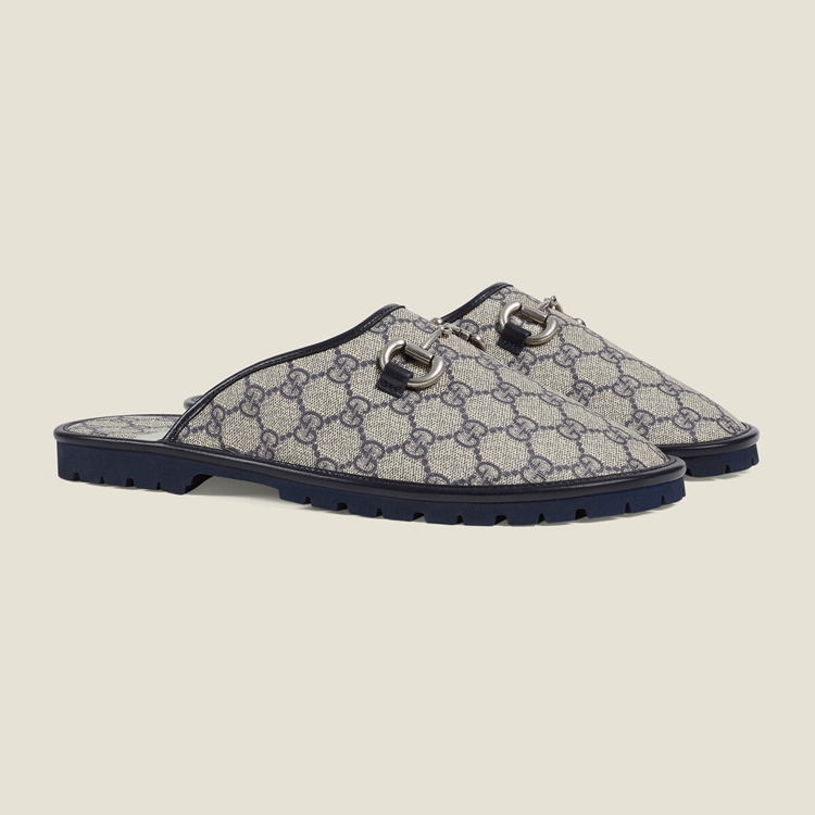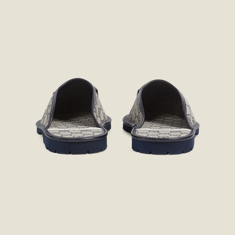 Style 694249 96G60 4073Mirroring The pattern’s historic origins, The GG motif is introduced in a timeless mix of blue and beige For Gucci Love Parade. Coming to The fore of each collection decade after decade, The monogram design has become a hallmark of The House. Here, The palette defines This pair of slippers.