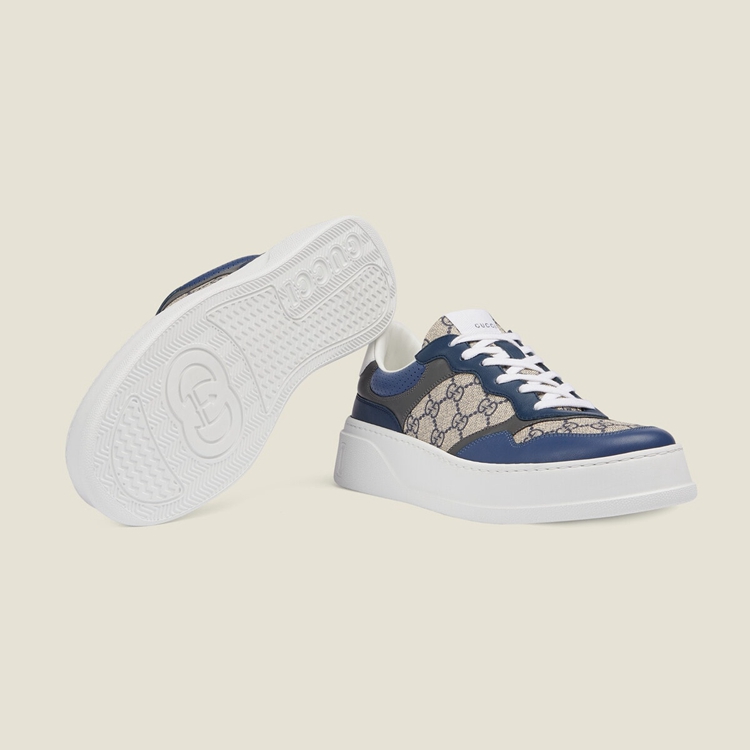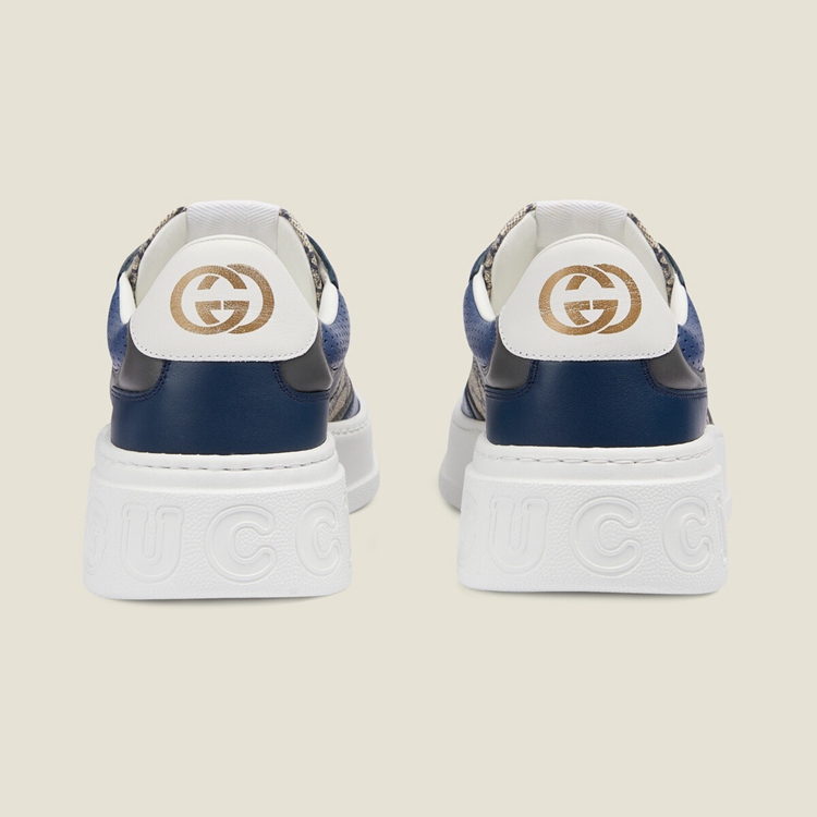 Style 669582 UPGB0 4273Mirroring The material’s historic origins, GG Supreme is introduced in a timeless mix of blue and beige For Gucci Love Parade. With a low environmental impact, The canvas has come to The front of each collection decade after decade to become a hallmark of The House. Here, The Classic palette defines This pair of sneakers.