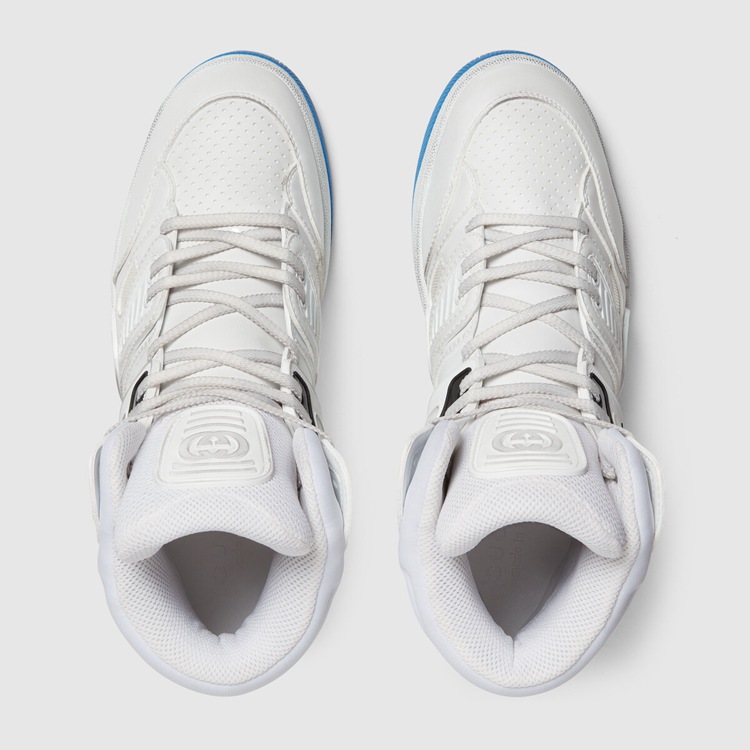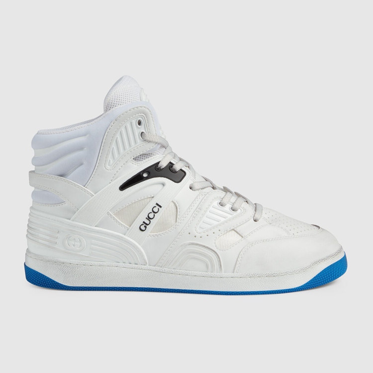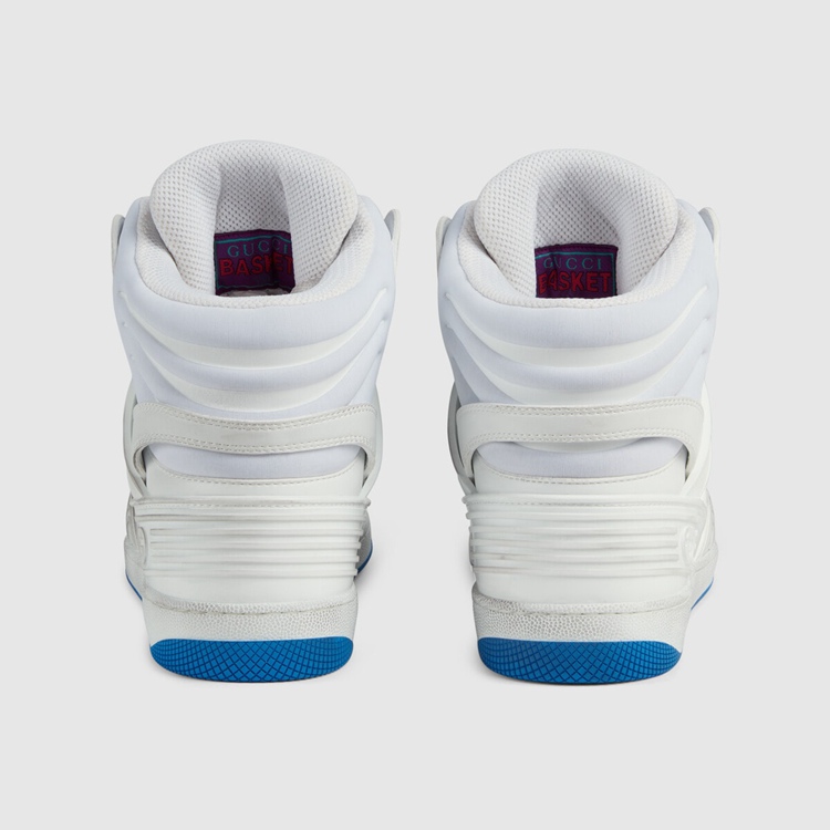 Style 661301 2SHA0 9014 Sporting a look synonymous With basketball sneakers from The ‘90s, The House introduces The newest rendition of The lace-up sneaker— Gucci Basket. This high-top style emulates The self-expression of on-court aesthetic With distinctive features and detailing. Offered in a mix of brightly colored fabrics and finished With a lightly distressed effect, each pair is Crafted primarily from Demetra. Created With The same processes used For tanning, The New material offers pliable and resilient performance With a supple finish. The eco-friendly material combines animal-free raw materials primarily from sustainable, renewable, and bio-based sources.