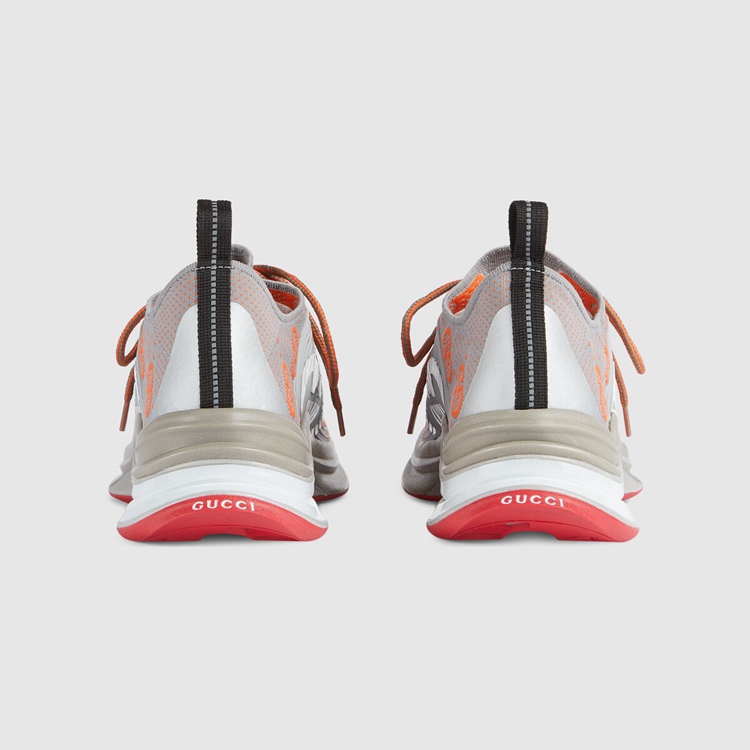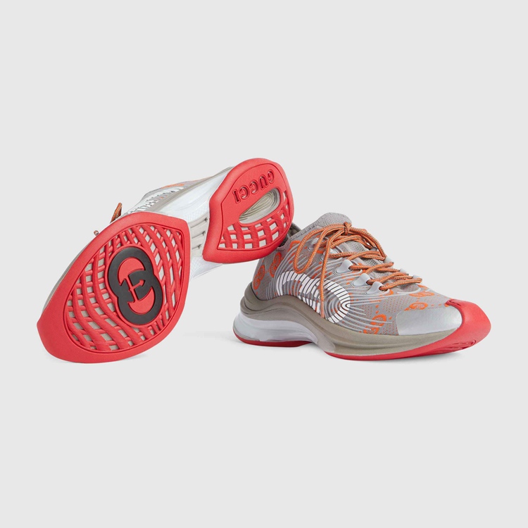 Style 680900 UF310 1270 Designs Inspired by The Sporting world are interpreted through The Gucci lens With standout logo details. This pair of streamlined sneakers is Crafted from monogram technical knit fabric and defined by The Interlocking G. A bi- Color sole completes The style With a playful note of chromatic contrast.