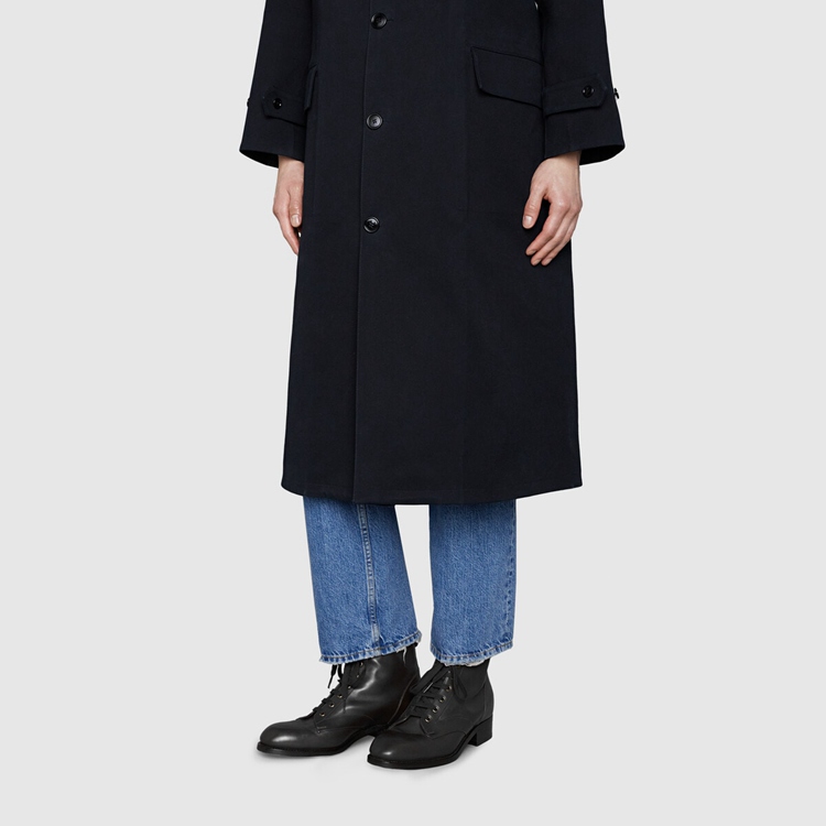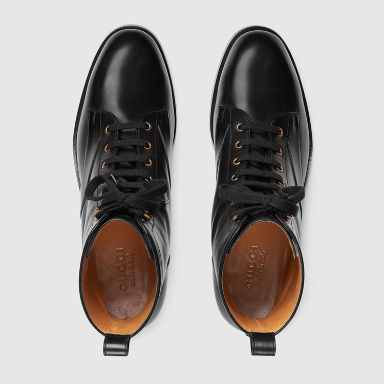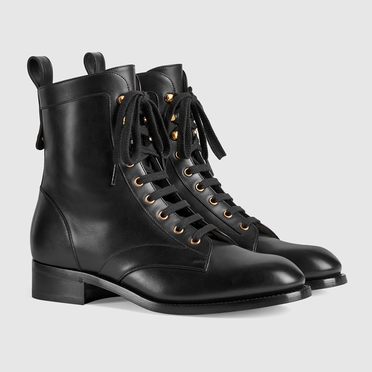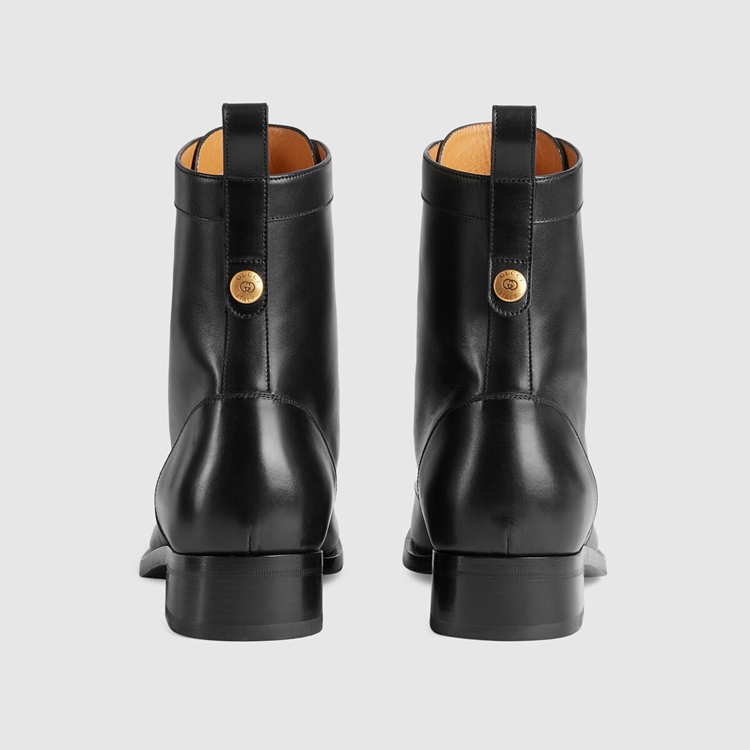 Style 680813 1W600 1000 Gucci Aria is an ode to both The traditional and The contemporary nature of The House. Symbols that have defined different eras appear as recognizable logos, subtle references Gucci’s origins. Here, This pair of ankle boots are enriched by their smooth black leather and a petite Gucci Interlocking G detail at The back.