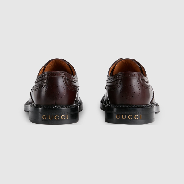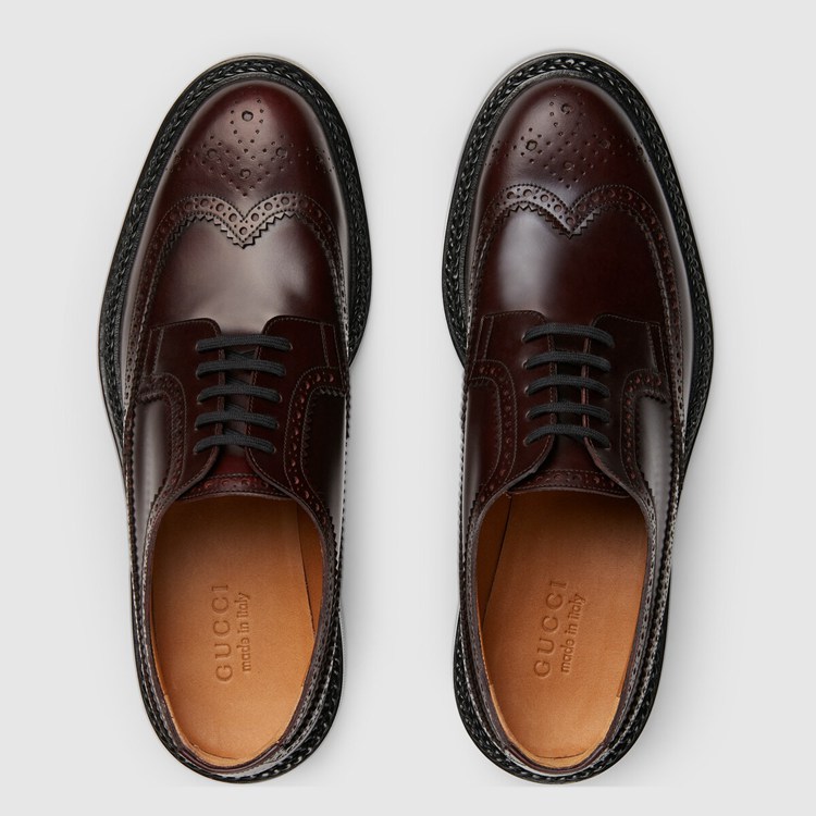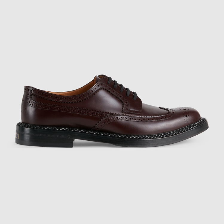 Style 669830 0GQ00 6004 The House’s collections continue to explore other times and places. Inspired by an a shoe stemming from The early twentieth century, brogue details add a textured element to minimalist shapes. This dark bordeaux leather shoe is defined by an intricate motif that recalls The traditional design.