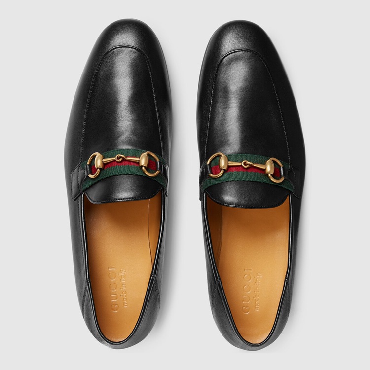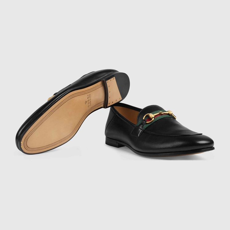 Style 581513 DLCC0 1078 Crafted from soft black leather, The loafer’s refined shape is enriched With a combination of two of The House’s most distinct codes: The Web stripe and Horsebit. Since The introduction of its Classic shape in The 1950s, The preppy- Inspired shoe has continued its influence, redesigned in New forms and materials. The foldable back heel gives The Classic design a contemporary appeal.