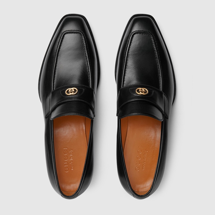 Style 669815 06F00 1000 A Part of Gucci’s heritage, The leather loafer evolves each season. Here, The elegant silhouette is enhanced With a shiny gold-toned Interlocking G hardware, adding a subtle reference to The House’s Founder Guccio Gucci.