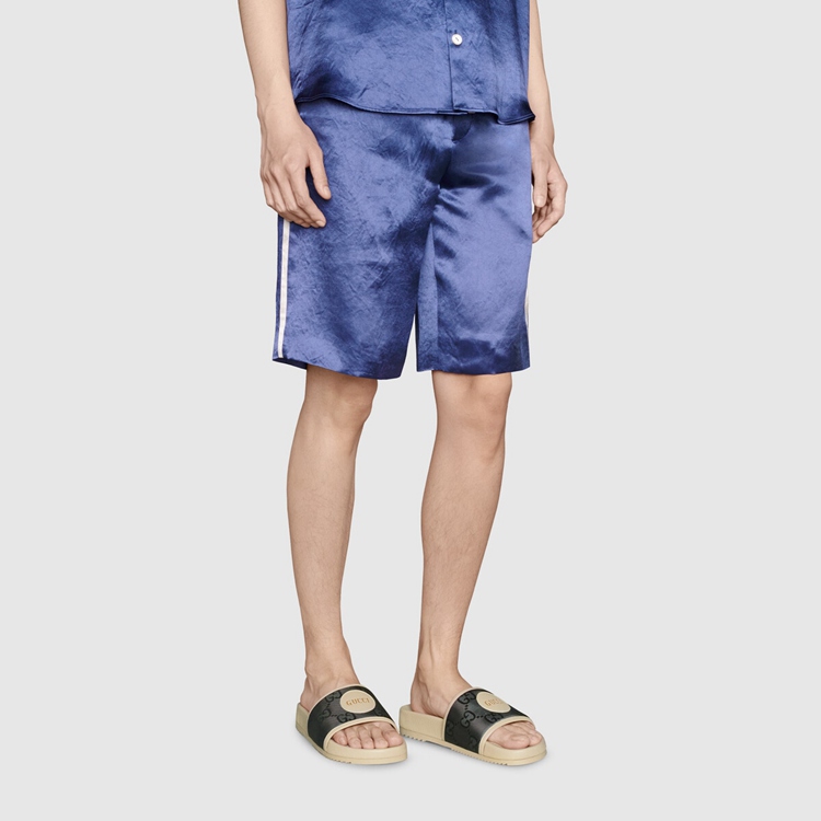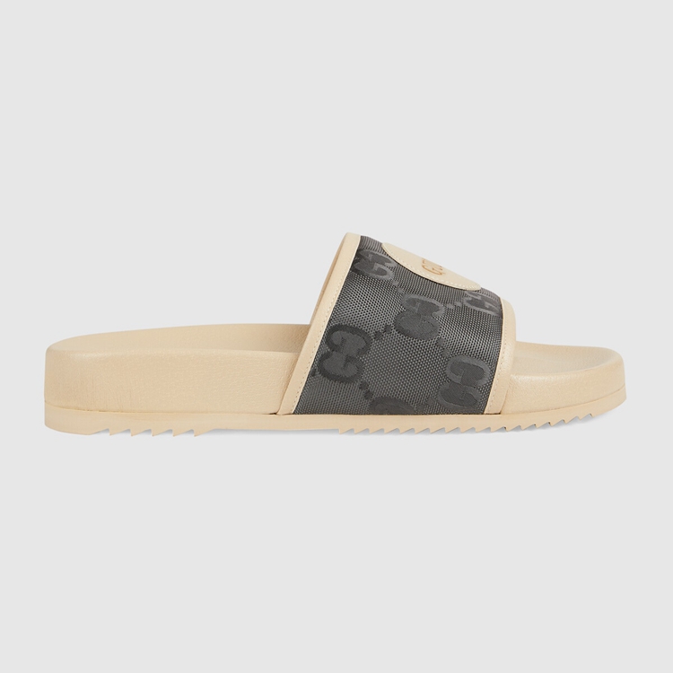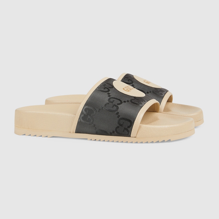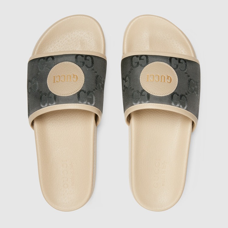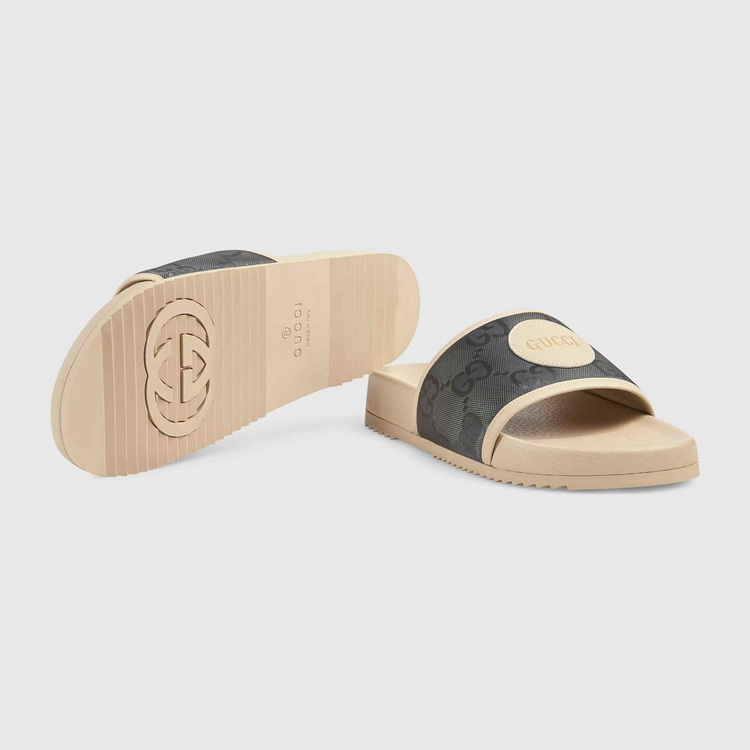 Style 644754 H9H90 1161Supporting The House’s commitment to sustainability, This pair of slide sandals is Part of a line of accessories and ready-to-wear made from recycled materials and trims. Gucci Off The Grid is The first collection from Gucci Circular Lines—a concept created to support The House’s vision For circular production. Designed For those mindful of their environmental impact, Gucci Off The Grid uses recycled, organic, bio-based and sustainably sourced materials.