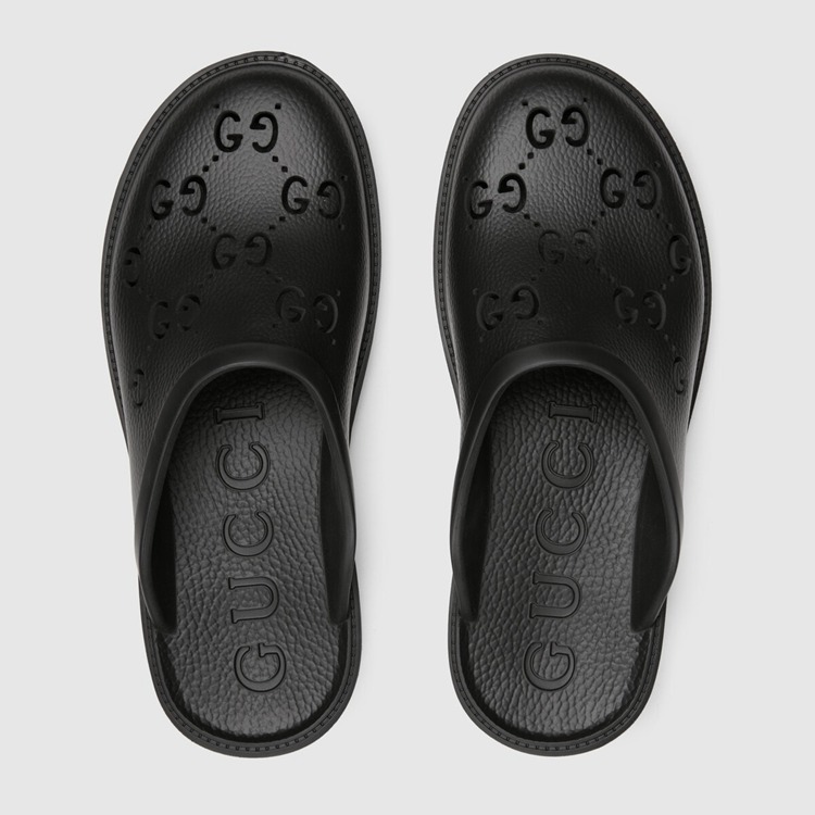 Style 655517 JFB00 1000First used in The 1970s, The GG logo was an evolution of The original Gucci rhombi design from The 1930s, and from then it’s been an established symbol of Gucci’s heritage that evolves each season. Here, The monogram appears as a cut out motif atop These black rubber sandals.