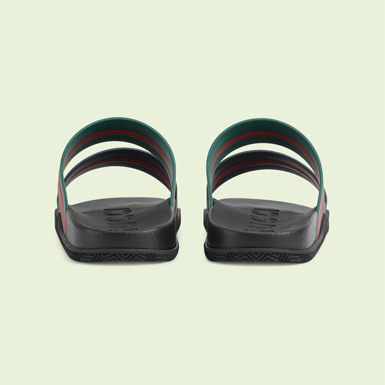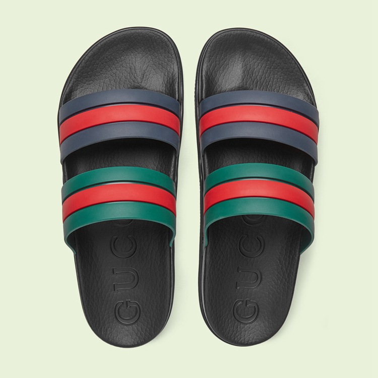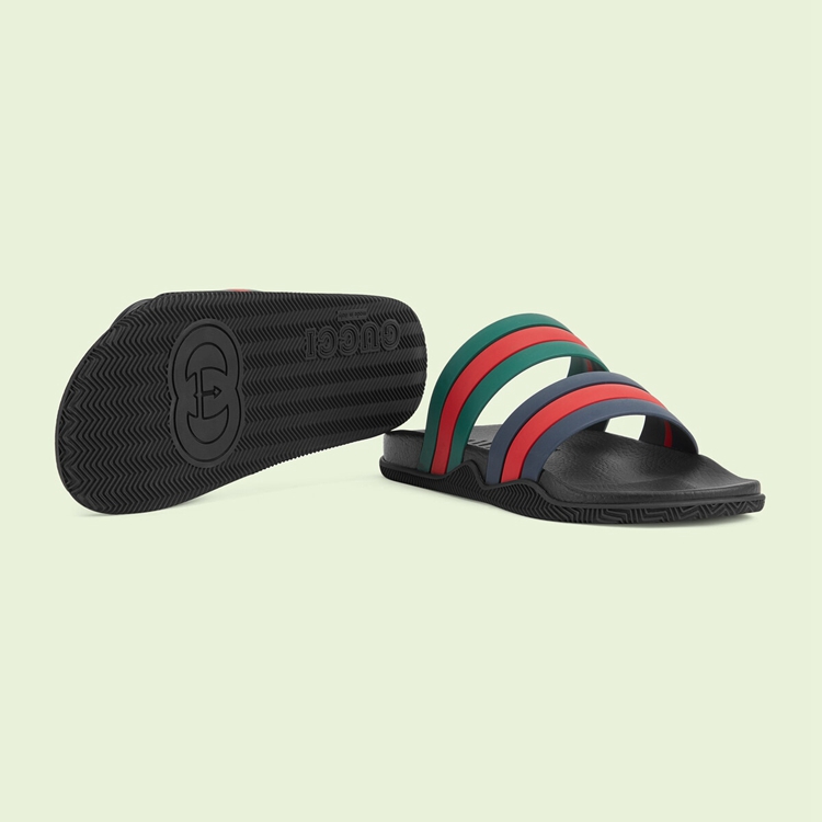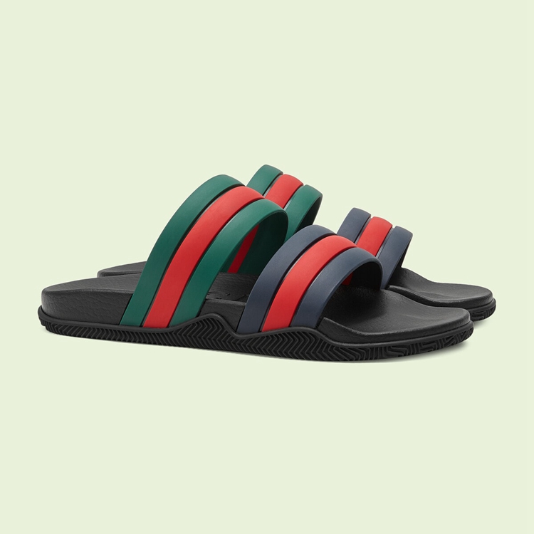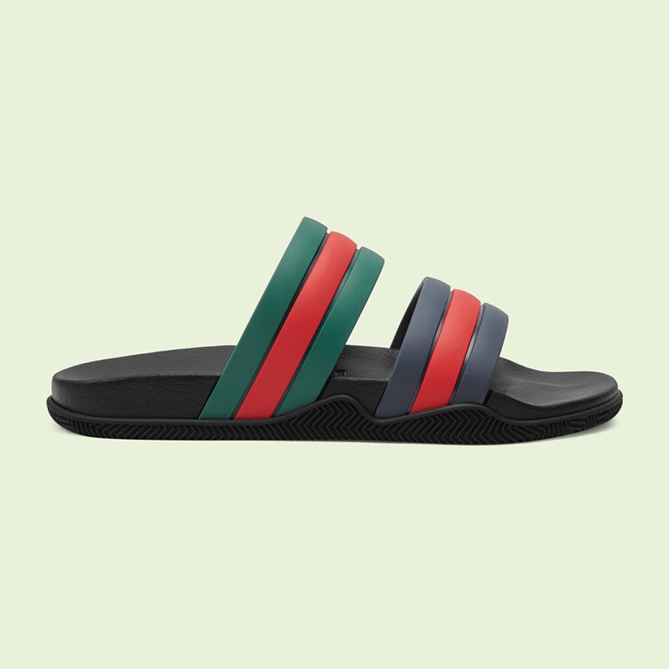Style 692381 J8710 8499Now a calling card of The House, The Web stripe is a tribute to The brand’s origins in The equestrian world. Coming to The fore throughout The world of Gucci Love Parade, This pair of slide sandals present a contemporary rendition of The archival symbol.