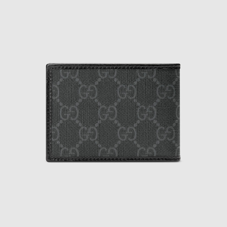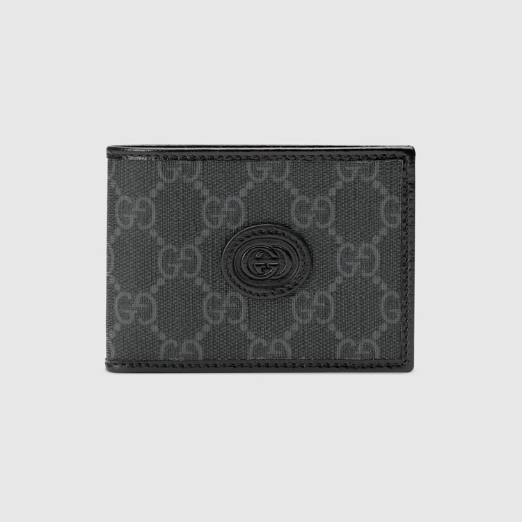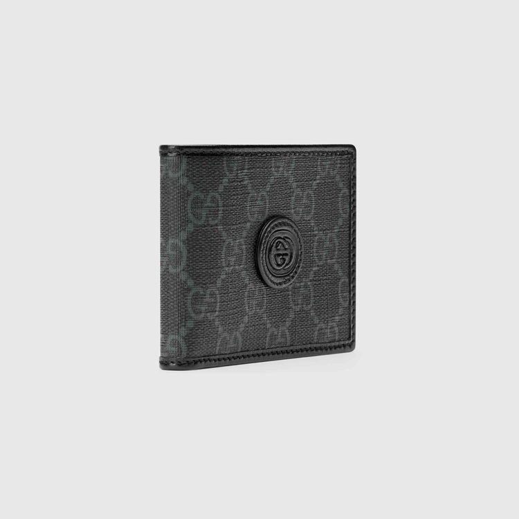 Style 673001 92TCN 1000Different interpretations of The House logo come together atop This mini wallet. Crafted from black GG Supreme canvas, The accessory is completed by an oval Interlocking G tag. The combination of The two archival details imbue The design With a vintage appeal.