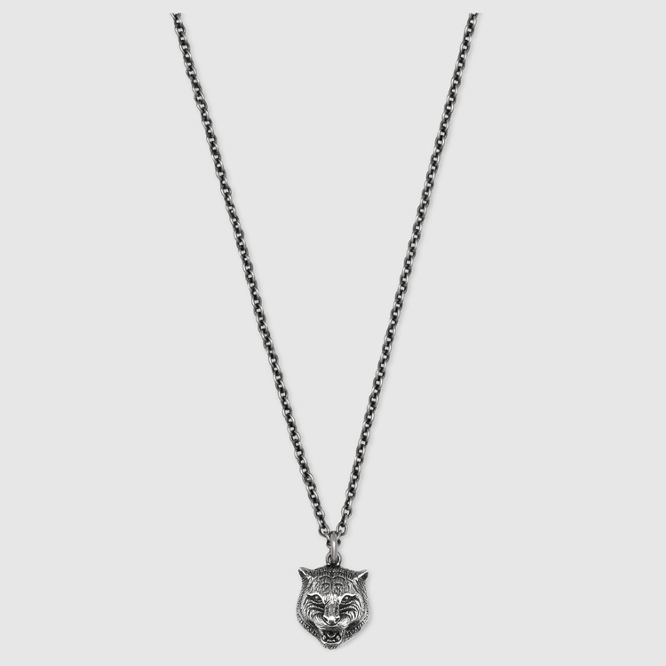 Necklace in silver with feline head