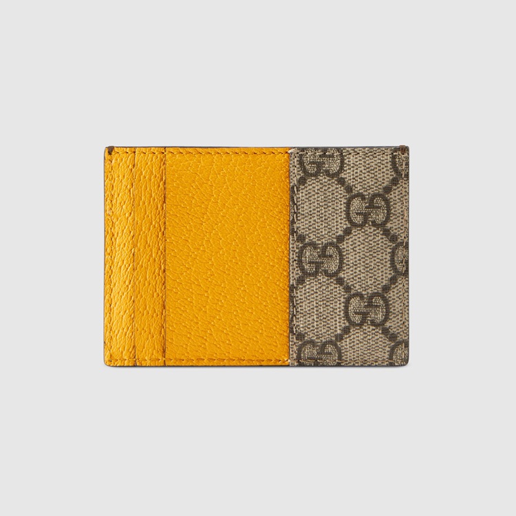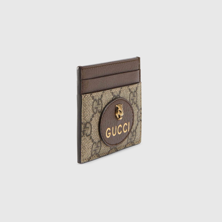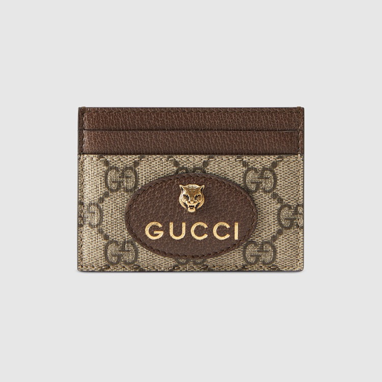 Style 597557 K9GOT 8861 The slim card case is Part of a collection of vintage Inspired leather accessories in GG Supreme featuring an oval leather tag With metal feline head, a now-established code of The House.