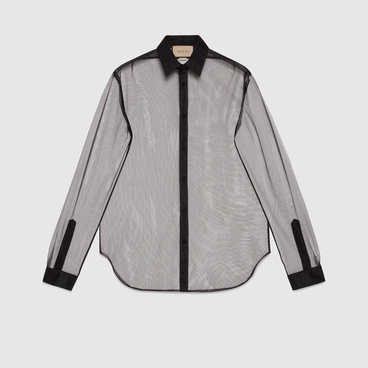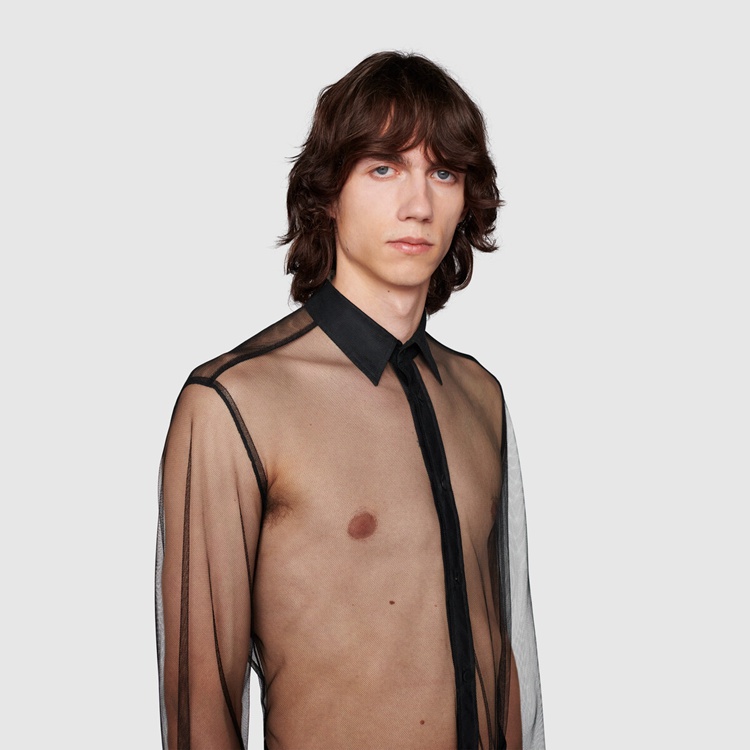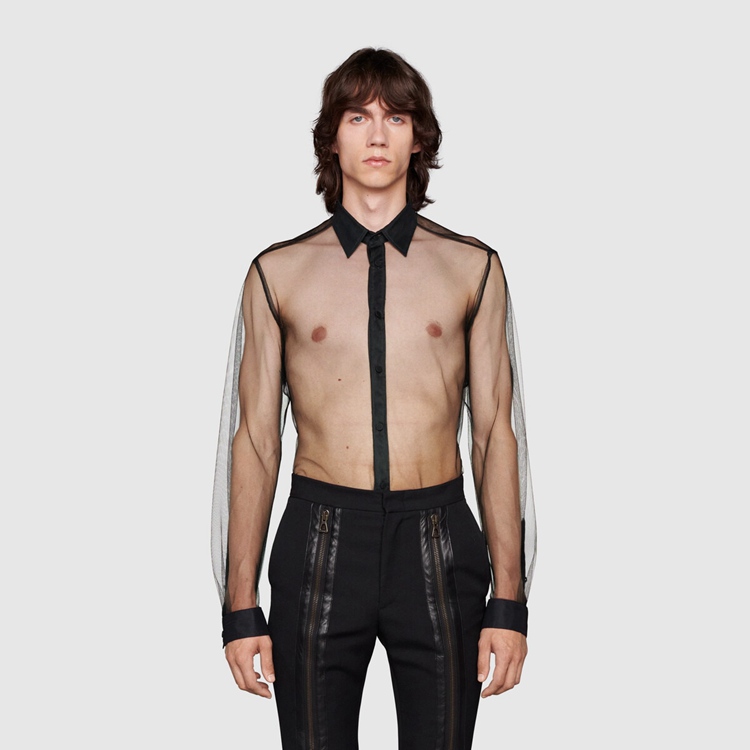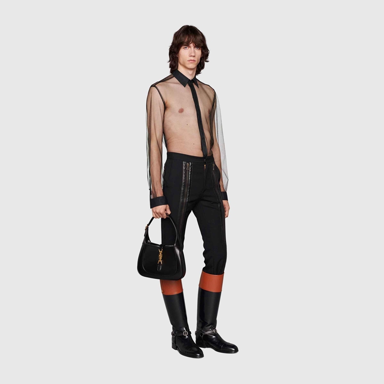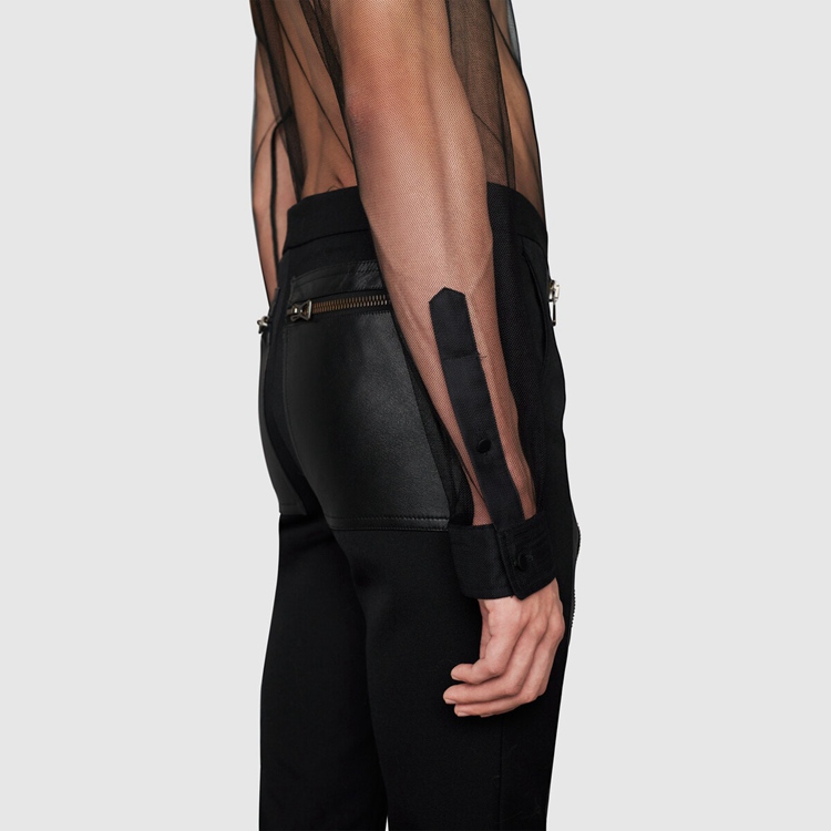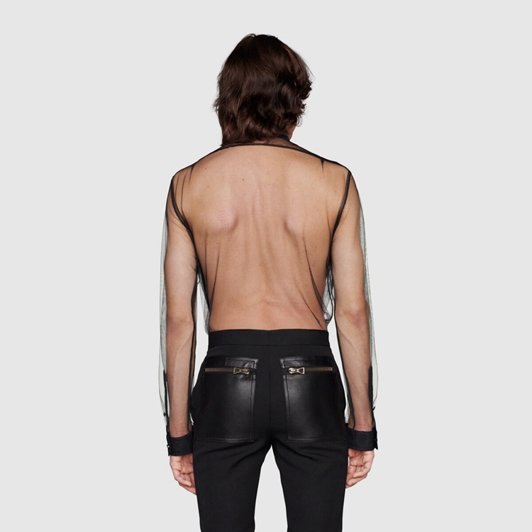 Style 670957 ZHT80 1000 Inspired by The mysterious aura of The nightclubs’ scene, The Creative Director explores The idea of dark sensuality With leather garments and sheer fabrics. Classic silhouettes are re-imagined as unconventional ready-to-wear pieces, exploring The concept of fashion as a means of self-expression.