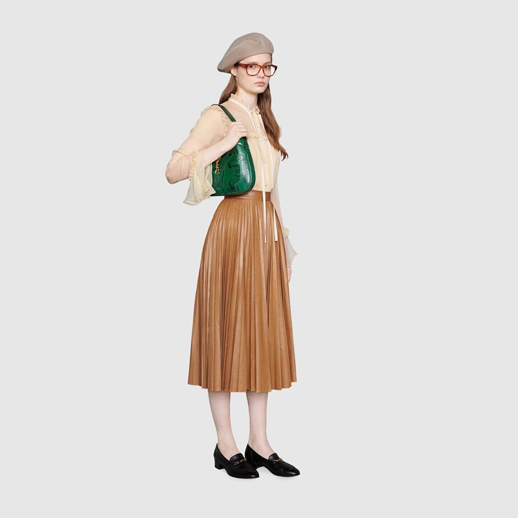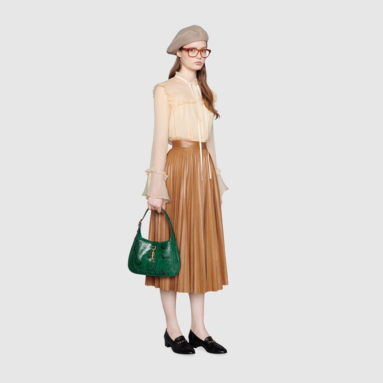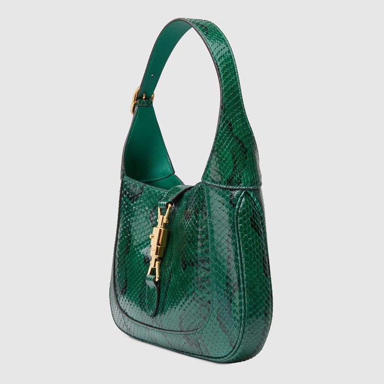 Style 636709 LU30E 3120Signature styles from The Beloved lines are presented in vibrant colors that recall precious gems. Here, The Jackie 1961 is introduced in emerald green leather. The style is further defined by its Emblematic piston closure.