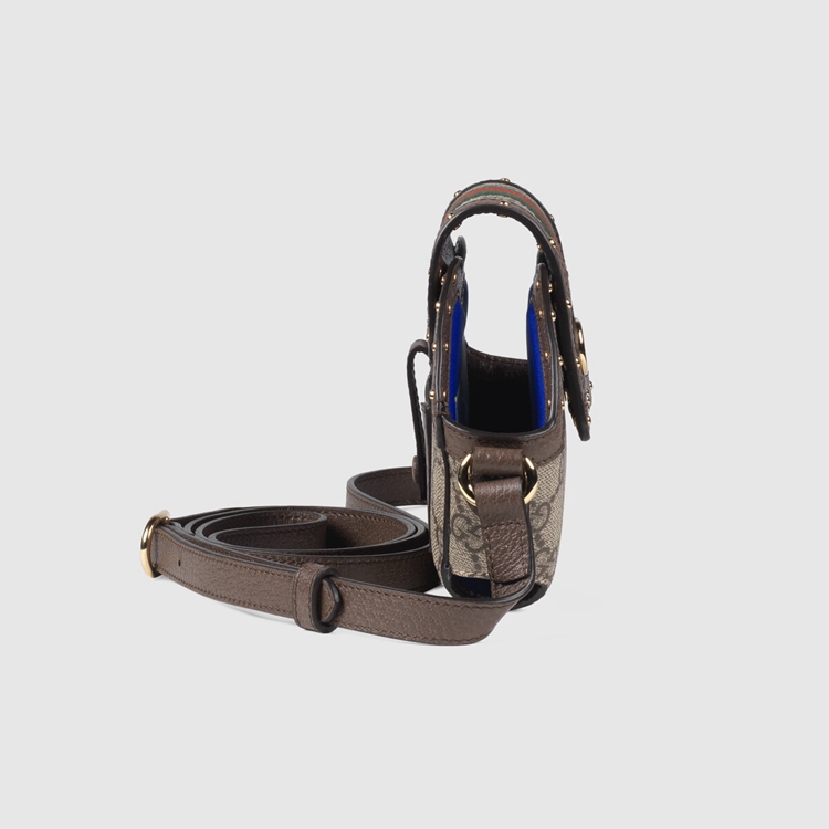 Style 675995 HUHUM 8745Lifestyle objects view The everyday through The Gucci lens. This case For AirPods Max brings vintage and contemporary together through its archive- Inspired design elements. Playing With The contrast between past and present, The inside of The accessory is printed With ‘Hodiernum’—a Latin word that means ‘belonging to The present day.’ An adjustable shoulder strap adds a versatile note With multiple ways to wear.