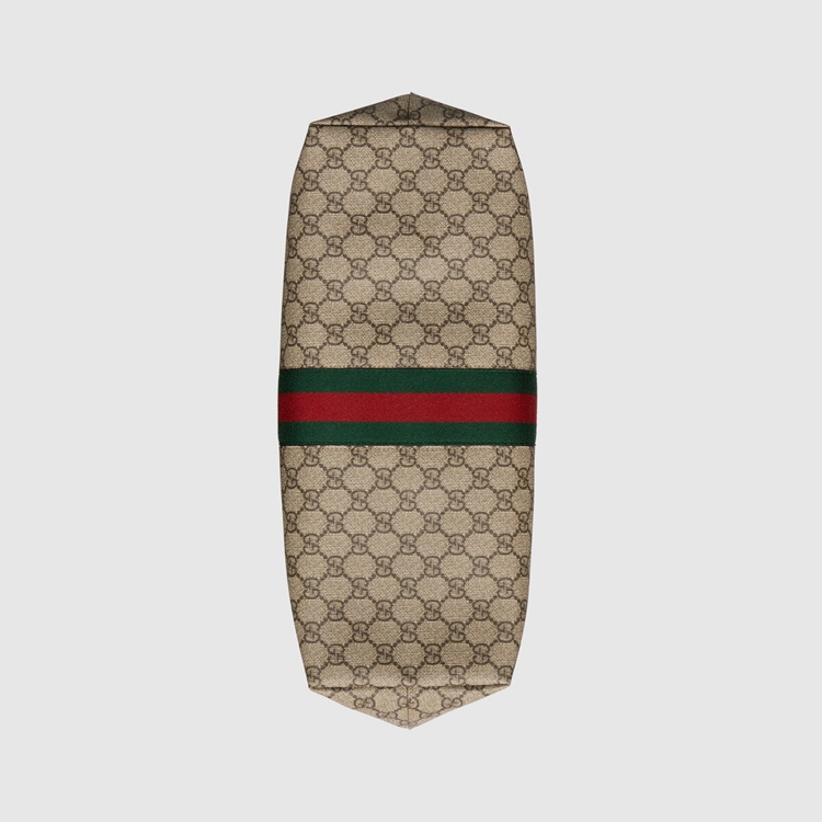 Style 631685 96IWB 8745 A Classic combination of The House’s most defining codes— The GG motif and Web stripe— The world of Ophidia continues to evolve, incorporating New shapes and silhouettes each season. With recognizable design elements in a practical New shape, This New medium sized tote is trimmed With textured leather and topped With Double G hardware. Thanks to its long leather handles, The style can also be carried as a shoulder bag.