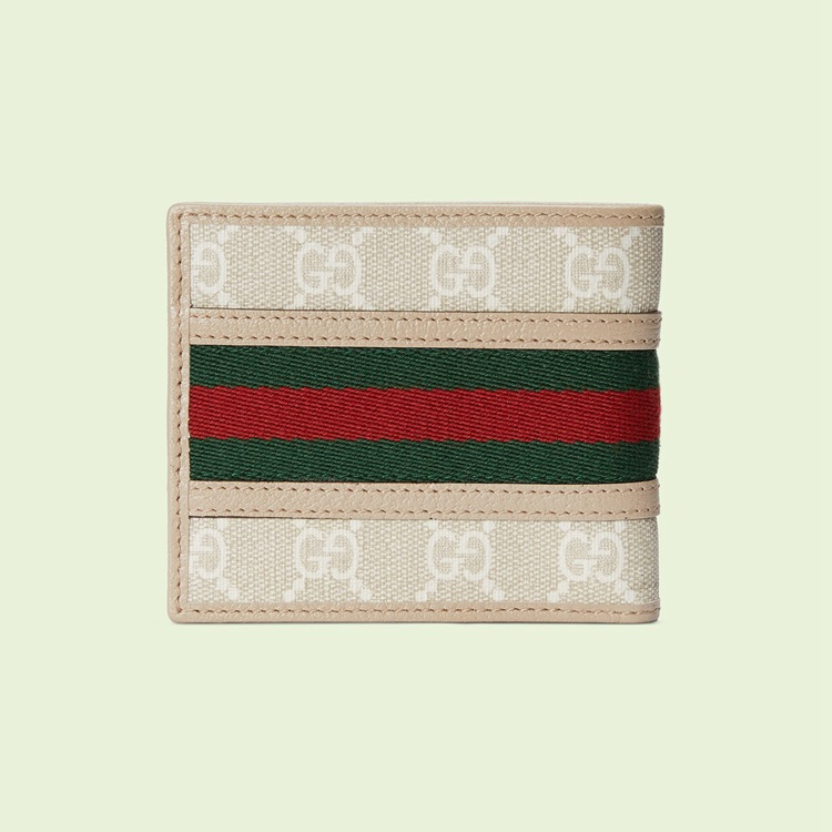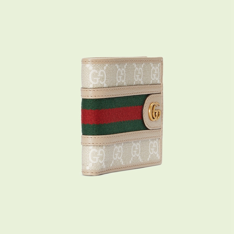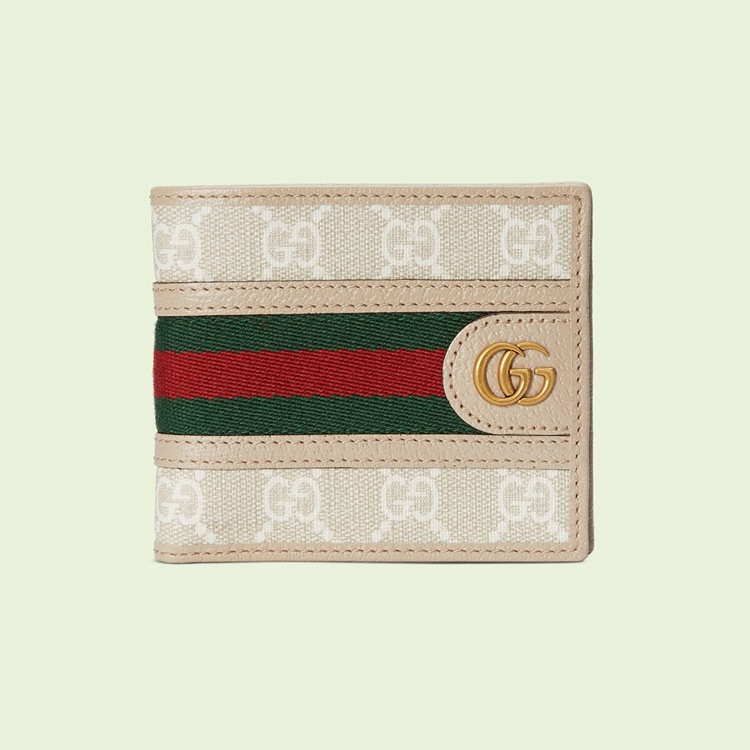 Style 597606 UULAG 9682 The world of Ophidia brings together Emblematic Gucci codes With vintage Inspired shapes. Mixing different chapters of The House’s history, The Double G hardware and Web stripe mix With GG Supreme canvas to tell a unique story spanning decades. Presented as a Part of Gucci Love Parade, The narrative defines This wallet.