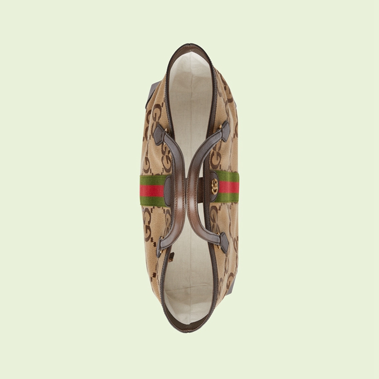 Style 631685 UKMDG 2570Marking The House’s first in-person fashion show since February 2020, Gucci Love Parade unfolded along Los Angeles’ walk of fame. Inspired by The timeless nature of old-Hollywood glamour, The collection presents contemporary takes on traditional pieces. This Ophidia medium tote is presented in GG canvas – a reimagination of Guccio Gucci’s initials in a maxi size.