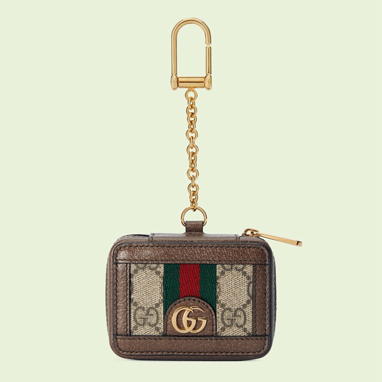 Style 699771 96IWG 8745 The world of Ophidia continues to evolve With The introduction of an AirPods case in GG Supreme canvas. Completed by The Double G and Web stripe, The style is completed With a keychain that can be used to attach it to The strap of a handbag, backpack or other accessory.