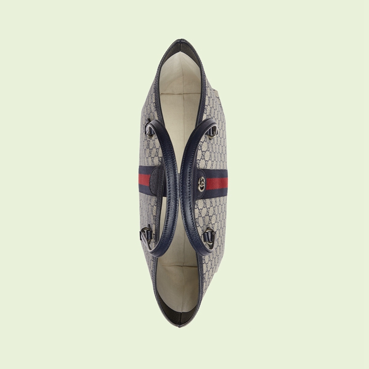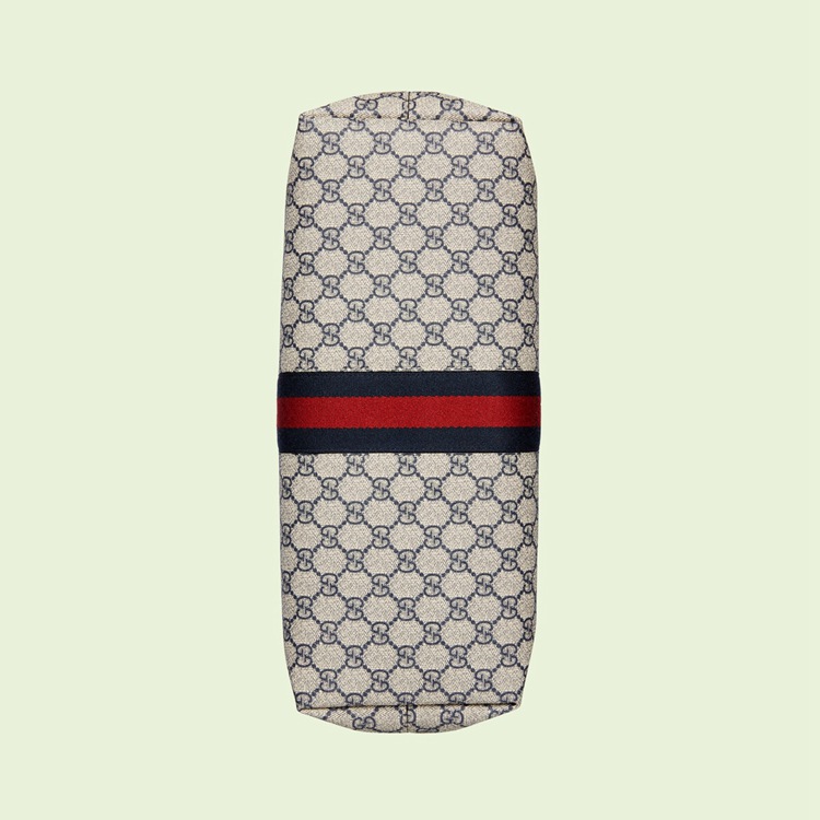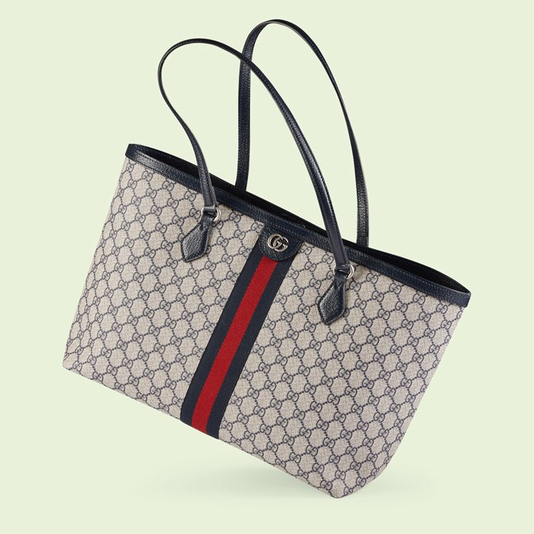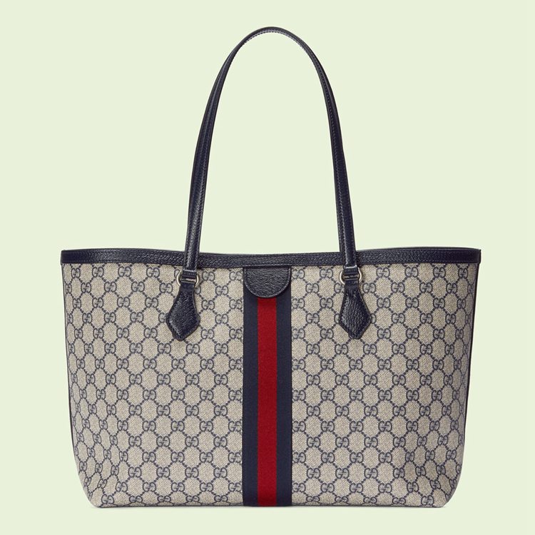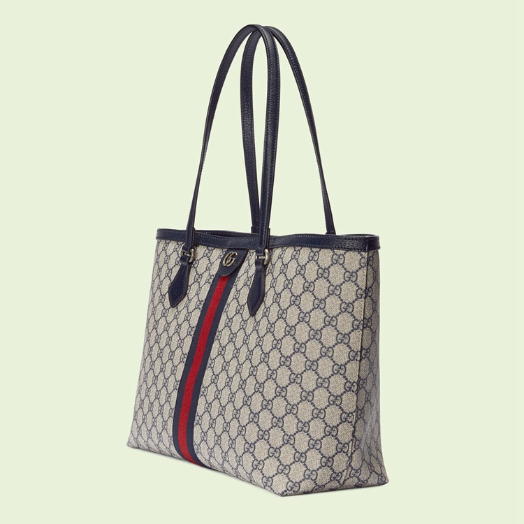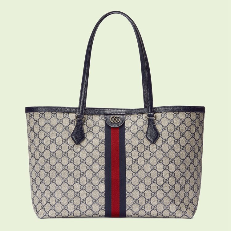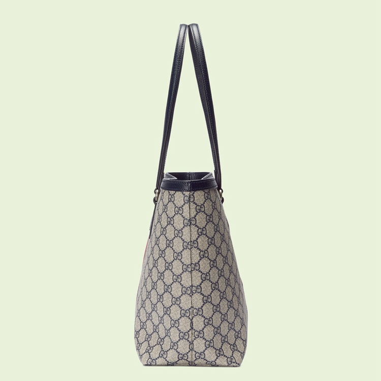 Style 631685 96IWN 4076Mirroring The material’s historic origins, GG Supreme is introduced in a timeless mix of blue and beige For Gucci Love Parade. With a low environmental impact, The canvas has come to The front of each collection decade after decade to become a hallmark of The House. Here, The Classic palette defines This medium-sized Ophidia tote bag, completed by The Web stripe in red and blue.