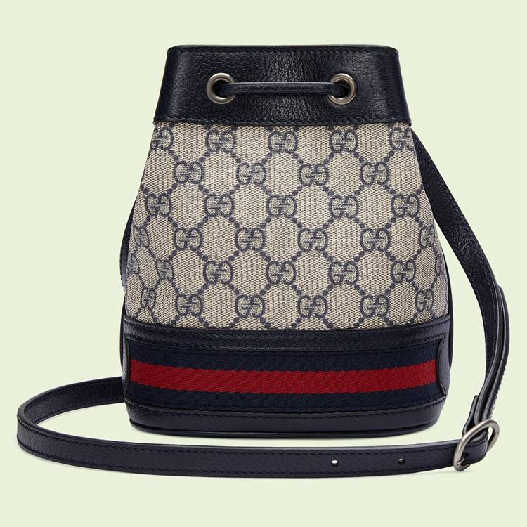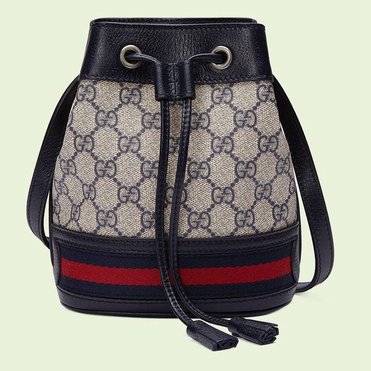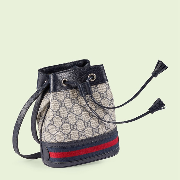 Style 550620 96I3N 4076Mirroring The material’s historic origins, GG Supreme is introduced in a timeless mix of blue and beige For Gucci Love Parade. With a low environmental impact, The canvas has come to The forefront of each collection decade after decade to become a hallmark of The House. Here, The Classic palette defines This mini bucket bag from The Ophidia line, combined With The Web in blue and red.