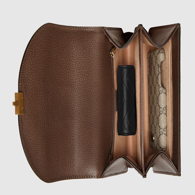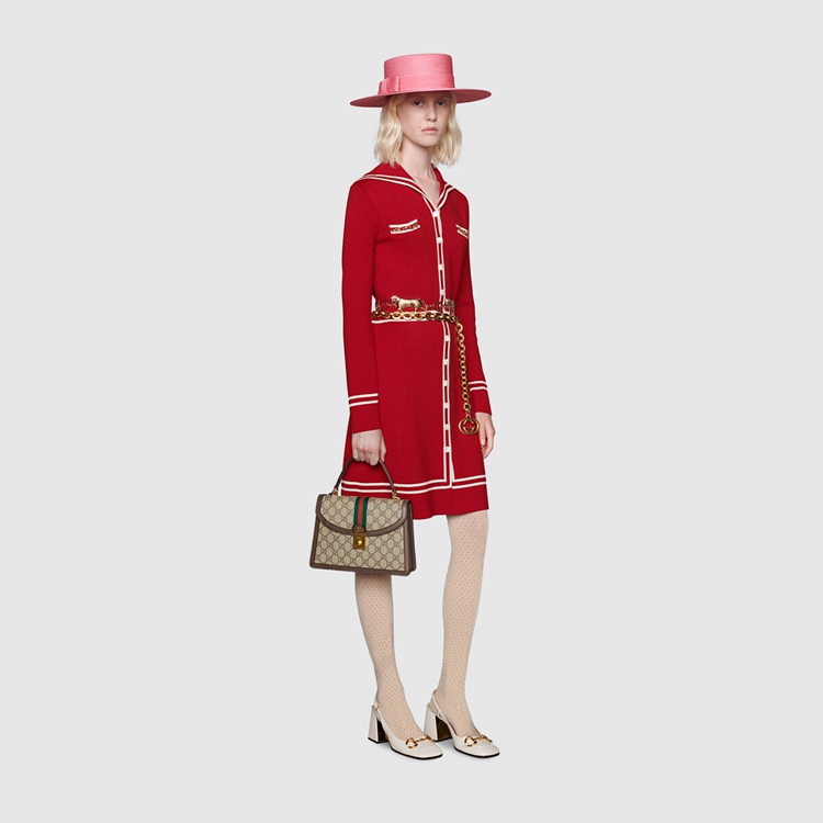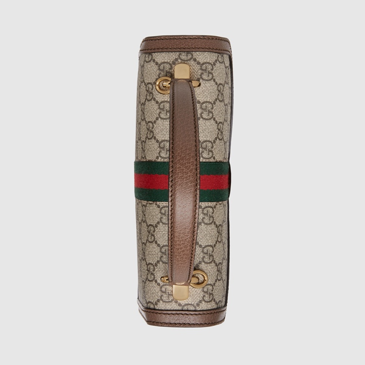 Style 651055 96IWX 8745 The world of Ophidia continues to evolve With New iterations each season. The top handle bag is presented as Part of The Epilogue collection With a detachable shoulder strap. The vintage Influenced square shape is accentuated by The House Web stripe and Double G hardware—a contemporary take on a Gucci archival belt buckle from The ’70s. Crafted from The House’s monogram canvas, The style has a strong logo feel.