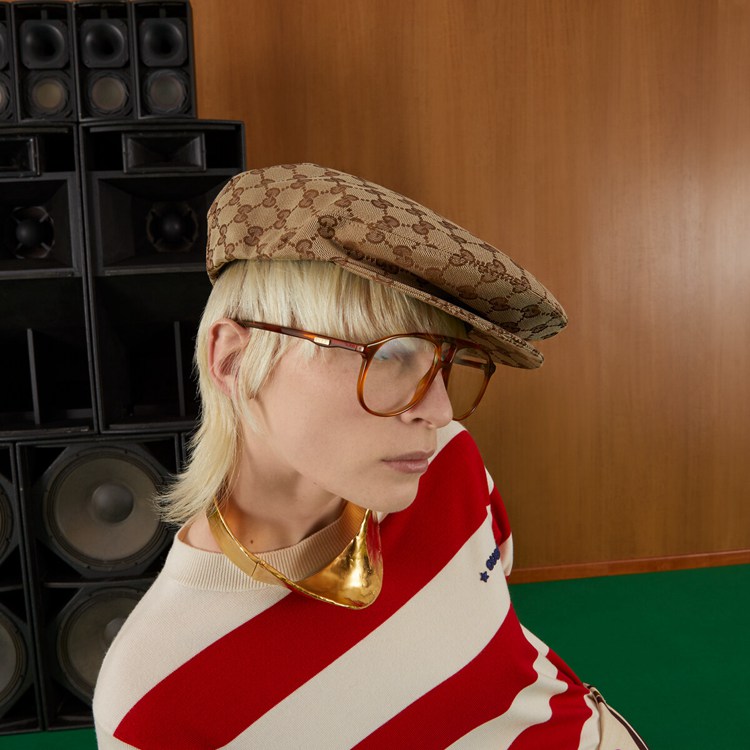 Style 696856 4HAOB 9764First presented during The ‘30s, The distinctive GG motif has been The inspiration For New explorations of expression For almost a century. This flat cap style hat also has The Gucci Web label on The back, a nod to The House’s equestrian roots.