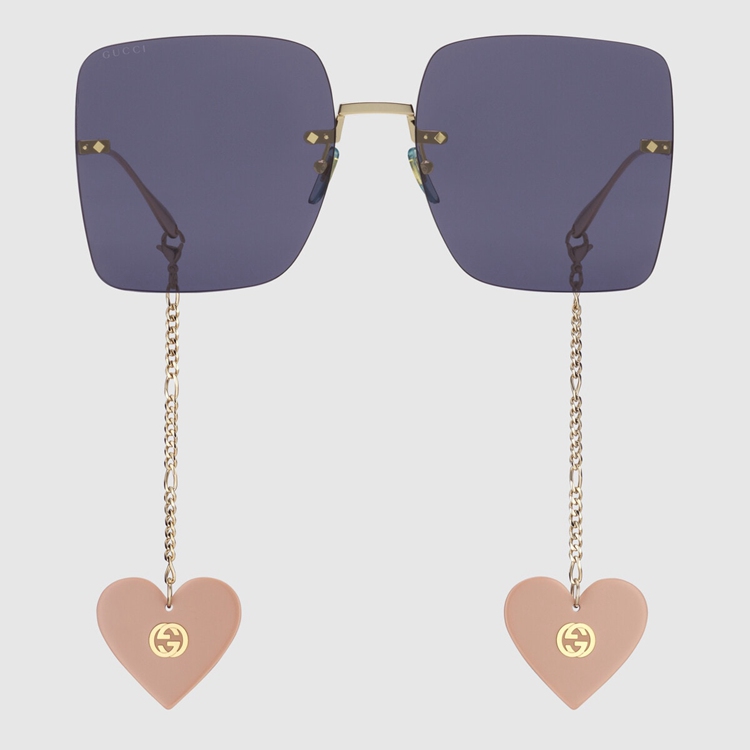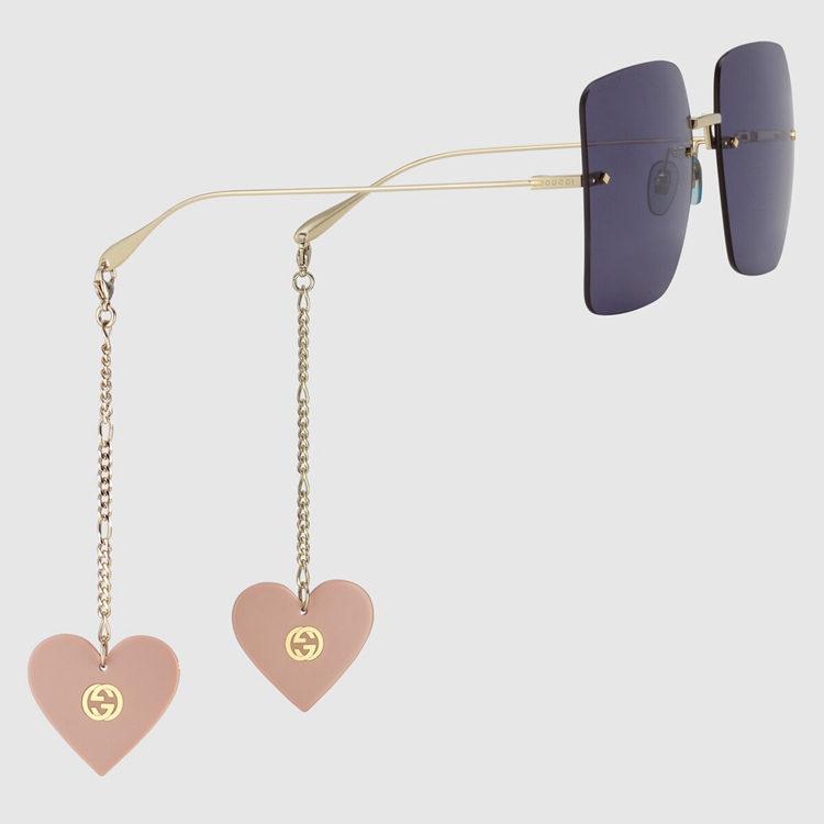 - Shiny gold-toned metal temples With Gucci lettering and detachable heart pendant With Interlocking G