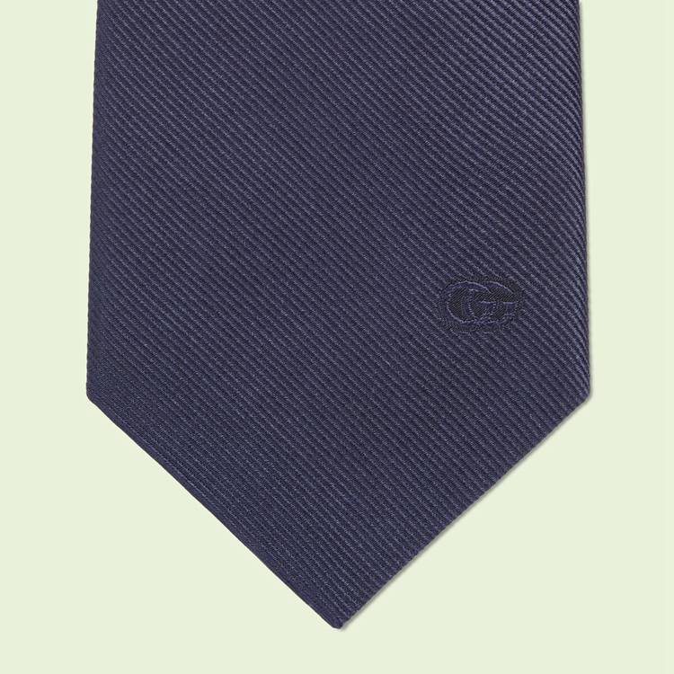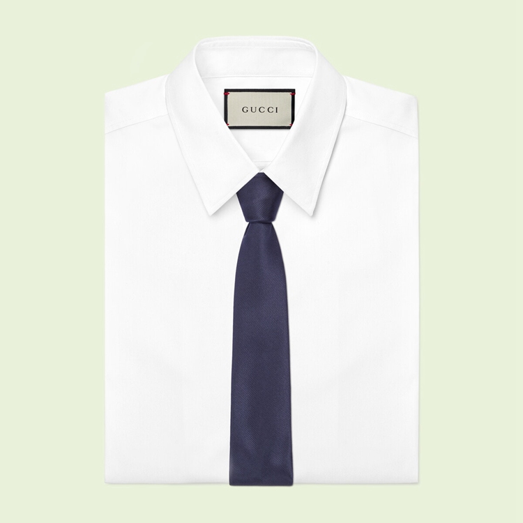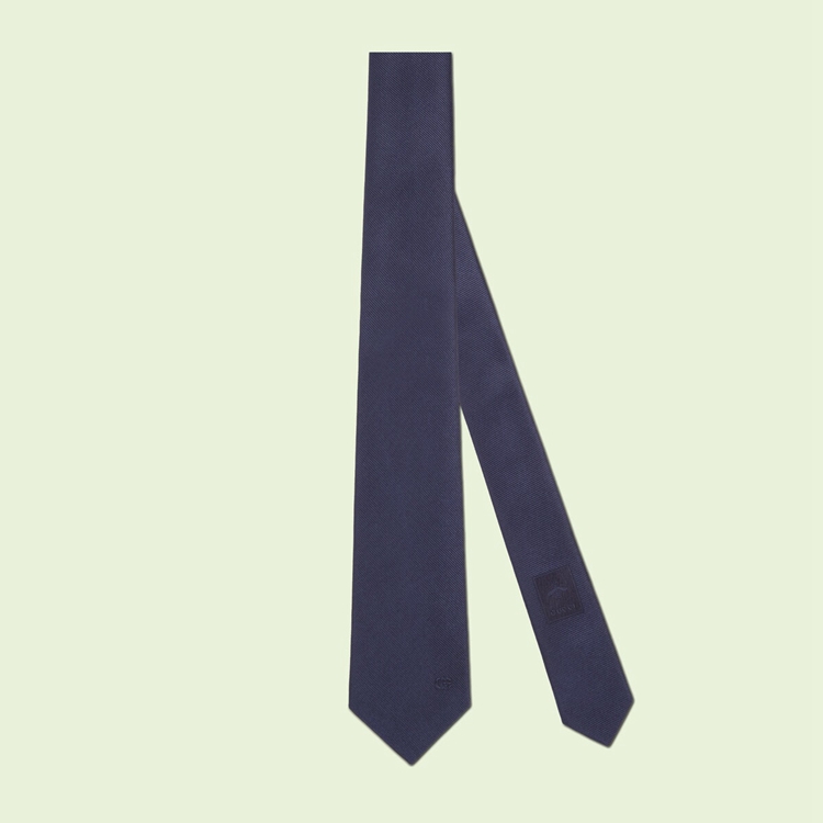 Style 707255 4EAAT 4000Conveying Gucci’s idea of timeless style that transcends The changing seasons and leaves all rules behind— This plain dark blue silk tie is an evergreen accessory.