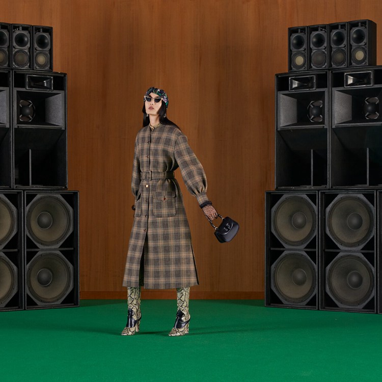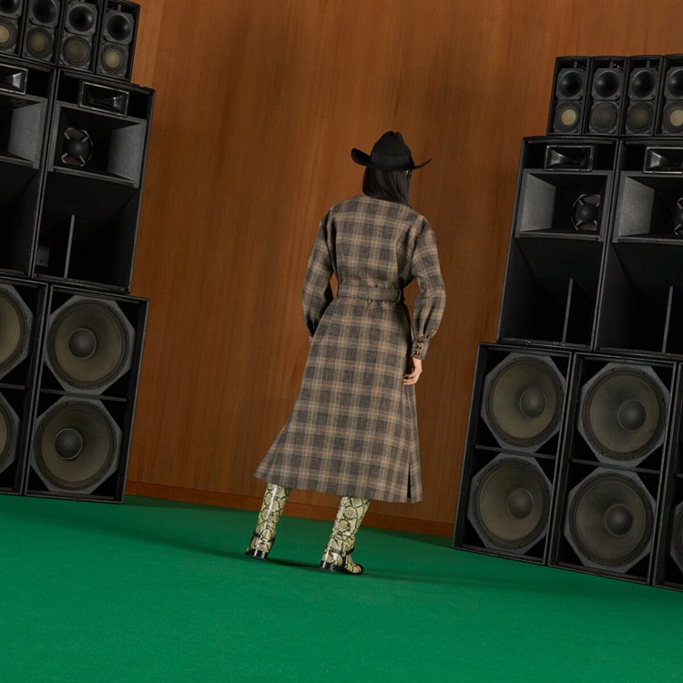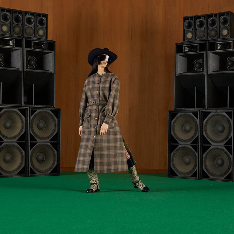 Style 699152 ZAI2K 1043 This distinguished check-on-check pattern With a formal feel dates back to The early 19th century, when it was first designed by The Countess of Seafield, in The valley of Glenurquhart. With Gucci Love Parade, a series of Retro Inspired check motifs make an appearance reworked in contemporary ways.