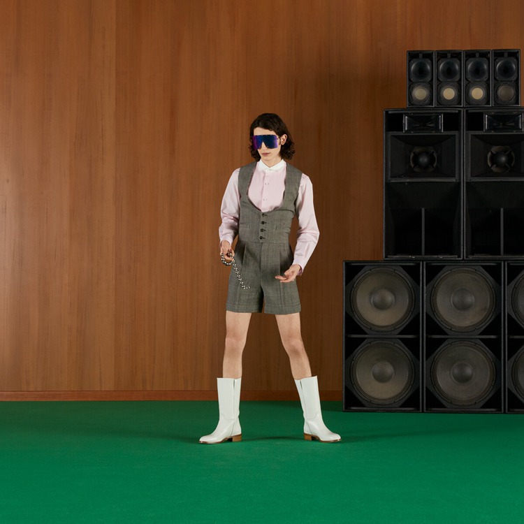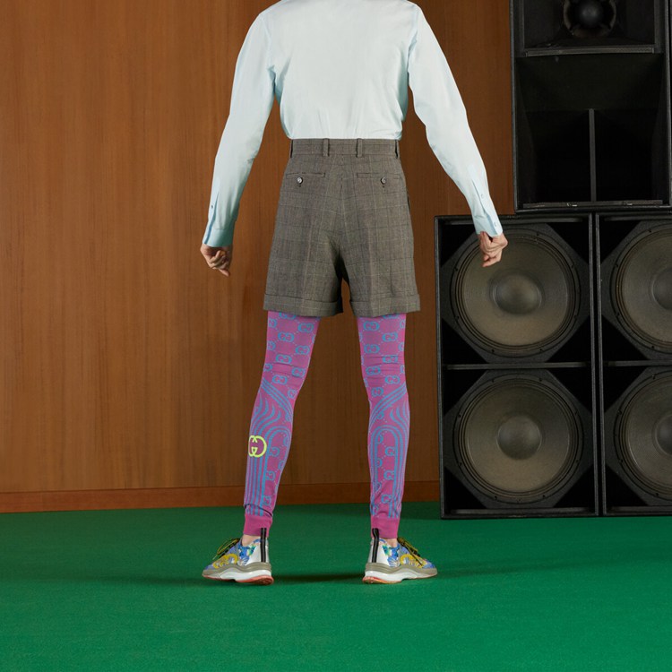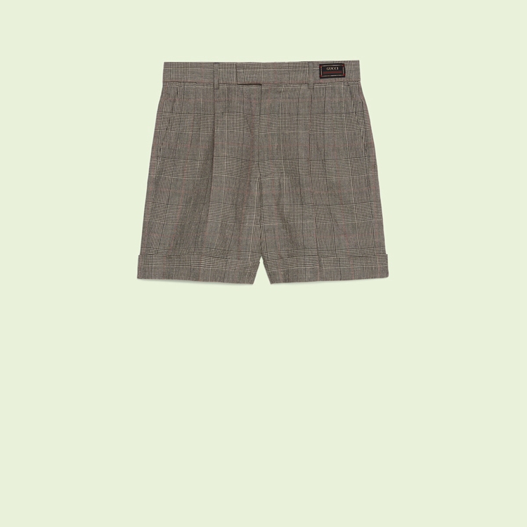 Style 690519 ZAILY 1136 A pair of shorts Crafted from grey and black Prince of Wales wool linen. Further exploring tailoring possibilities, suits Inspired by made-to-measure Retro elegance appear throughout The Gucci Love Parade collection. Introducing an array of different check patterns and fabrics – often mismatched For an interesting game of dissonance.