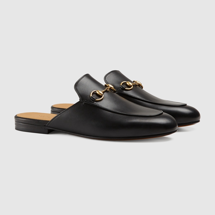 Style 423513 BLM00 1000An essential Gucci style since its debut in The Fall Winter 2015 fashion show, The Princetown slipper is presented in black leather. The mule design features The distinctive gold-toned Horsebit, an archival symbol Inspired by The equestrian world.