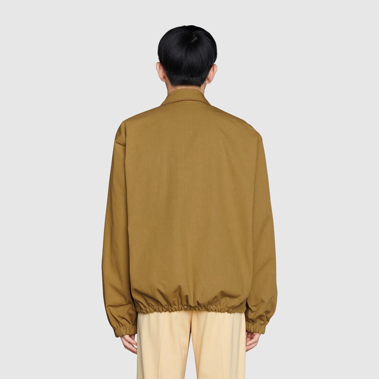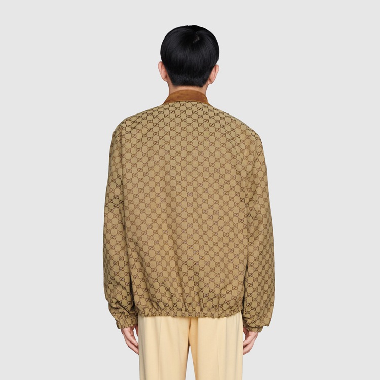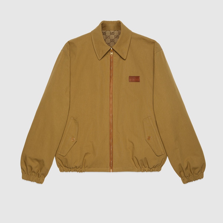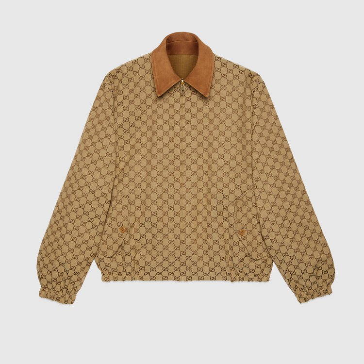 Style 654842 Z8AN5 2109 A reversible GG jacket has a Gucci vintage logo patch on One side. The Gucci vintage logo reappears For The Ouverture collection. Presented as patches, embroideries and prints, The symbol was first introduced in The 1970s.