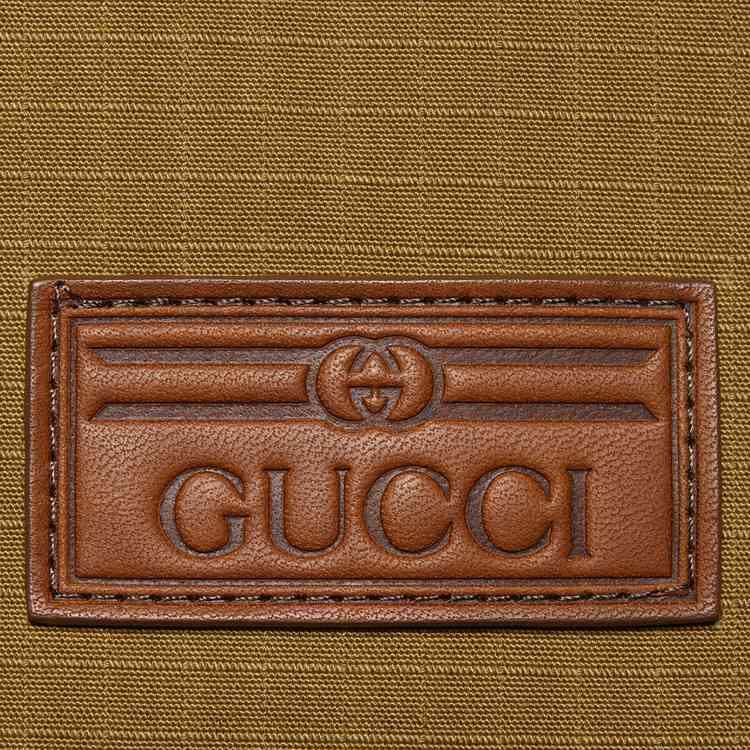 - Light brown cotton nylon ripstop With leather Gucci vintage logo patch on One side