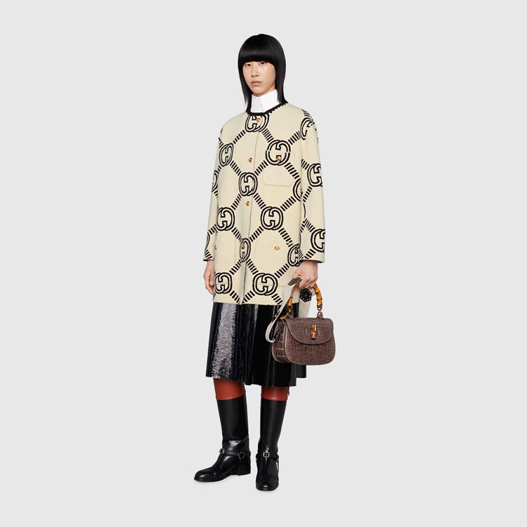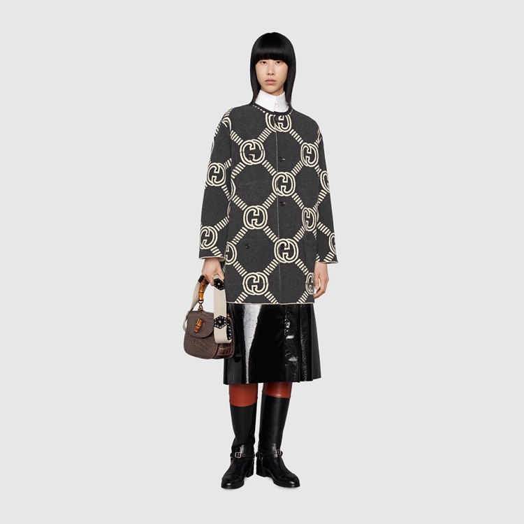 - Black and ivory maxi Interlocking G wool jacquard