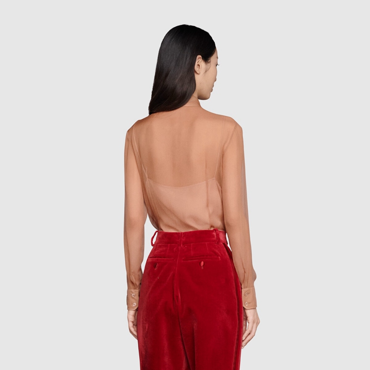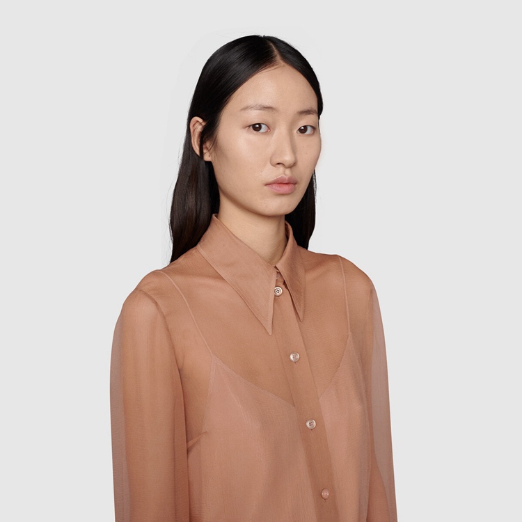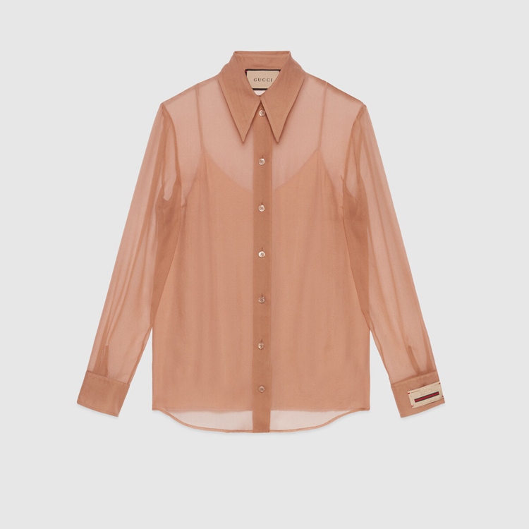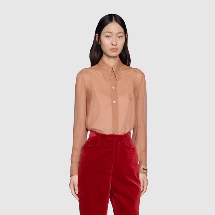Style 679295 ZHS57 2468 Layering and experimentation With sheer finishes define The silhouettes of The latest collection, from daywear to evening attires. Pushing through The rules of conventional dressing, see-though pieces like This silk chiffon shirt portray self-expression.