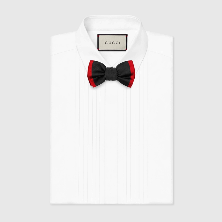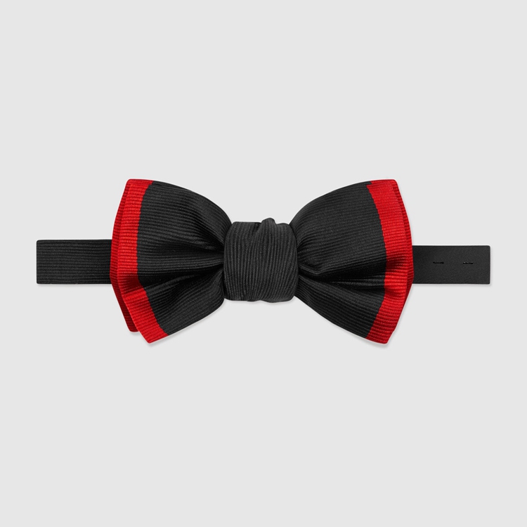 Style 442230 4G016 1074 Crafted from black silk faille, The bow tie is emphasized by a contrast red trim.