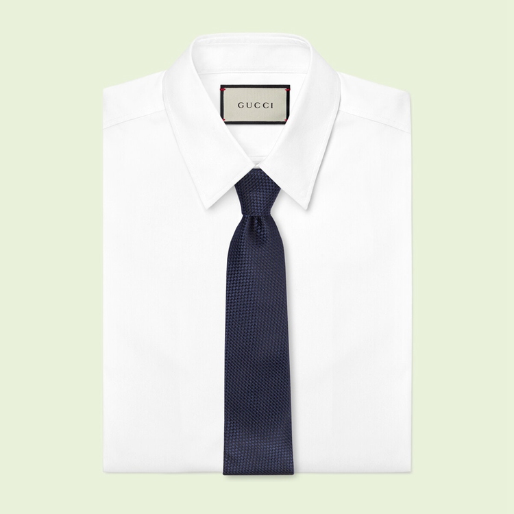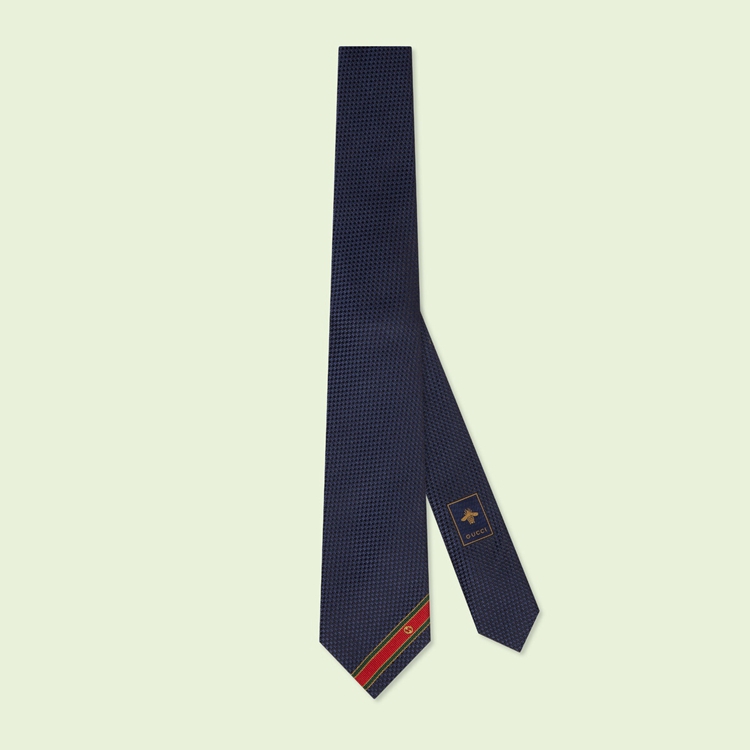 Style 643945 4E002 4174 One of The House’s most recognizable codes, The Interlocking G is representative of Founder Guccio Gucci’s initials and is continually reintroduced season after season. Here The motif appears as a subtle nod atop This silk jacquard tie as Part of The historic green and red Web stripe.