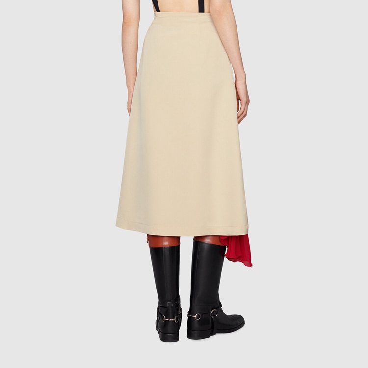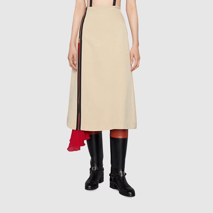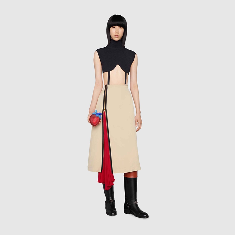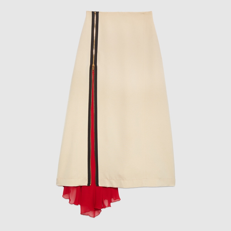 Style 669705 ZAH2N 9783 Marking The 100th anniversary of The House, Gucci Aria is a celebration of The history of Gucci. Taking cues from The archive, The most recent collection is a culmination of symbols, silhouettes and prints defining The ready-to-wear and accessories selection. This skirt reintroduces The zip, a detail first used by Tom Ford For Gucci, that is both decorative and functional.