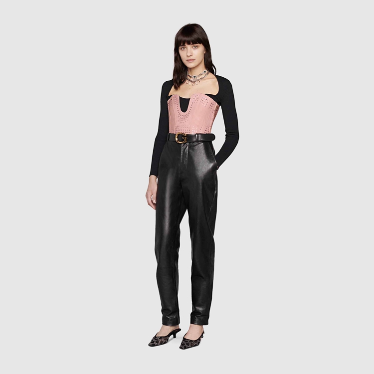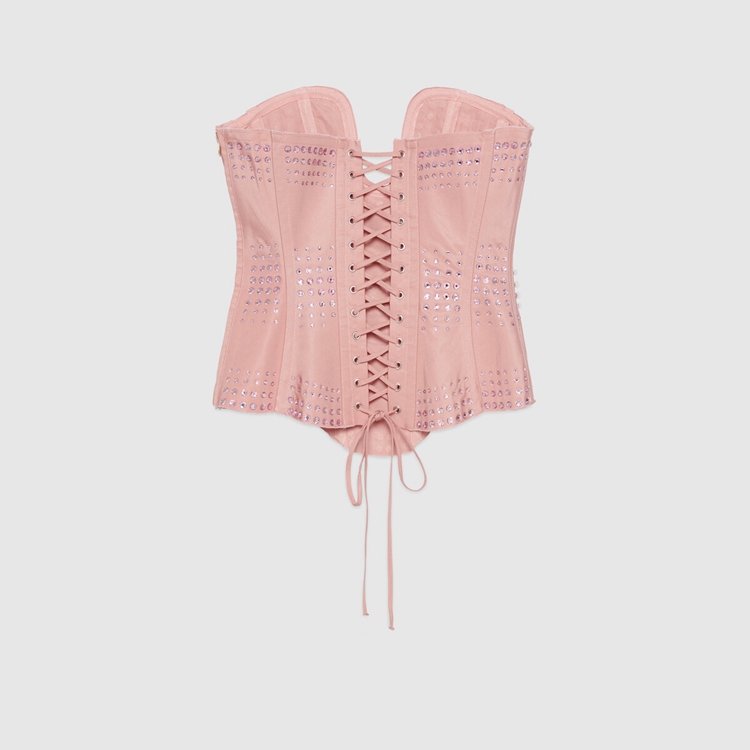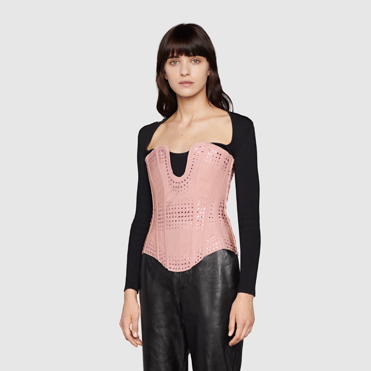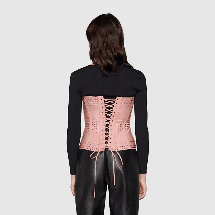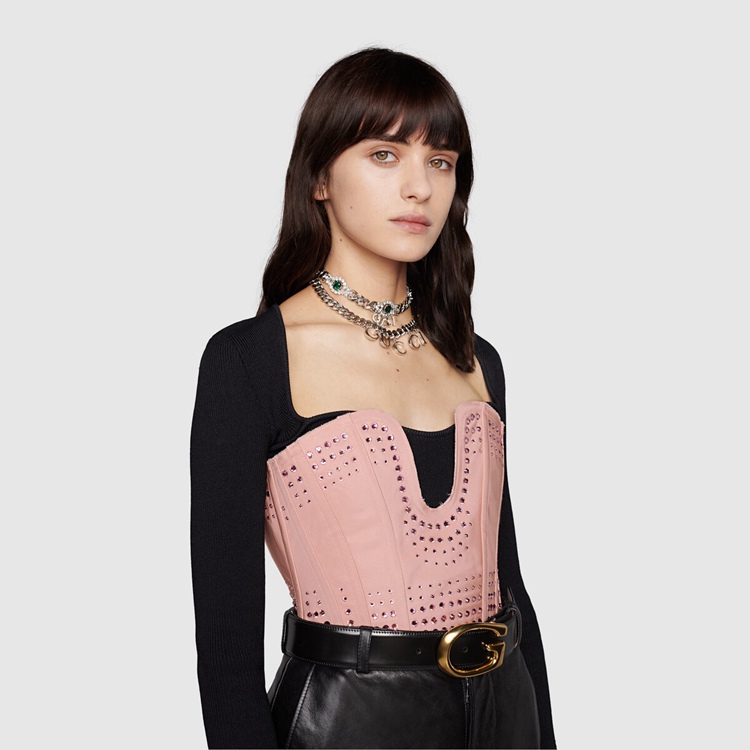 Style 671945 XUADU 5390 Imbued With vintage influences, This corset references The House’s fascination With The past. A homage to The minimal sexiness of The ’90s, streamlined silhouettes combine With The maximalist vision of Alessandro Michele For Gucci. Two distant approaches speak to The freedom of expression and The idea to toss aside conventional rules of fashion.