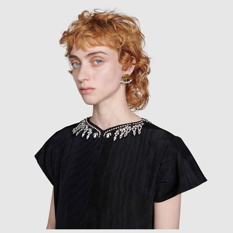Style 605853 J1D50 8066 The Double G—an archival reprisal of The House’s signature emblem—defines This single earring, characterized by an aged gold finish For a vintage appeal. Sparkling crystal drops speak to The dreamlike narrative felt throughout The Cruise 2020 collection.