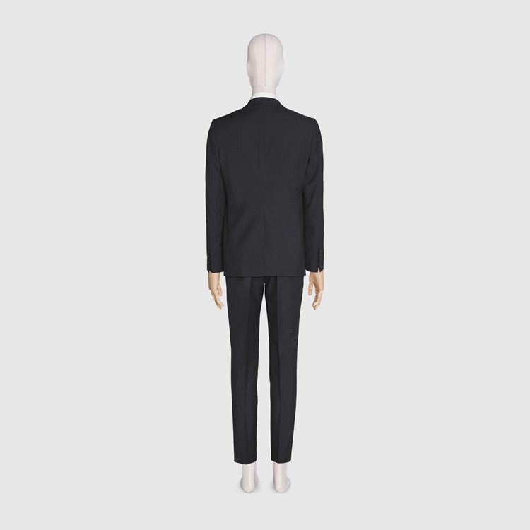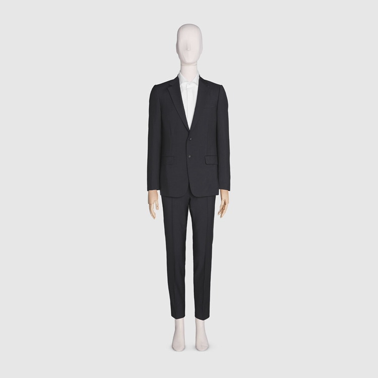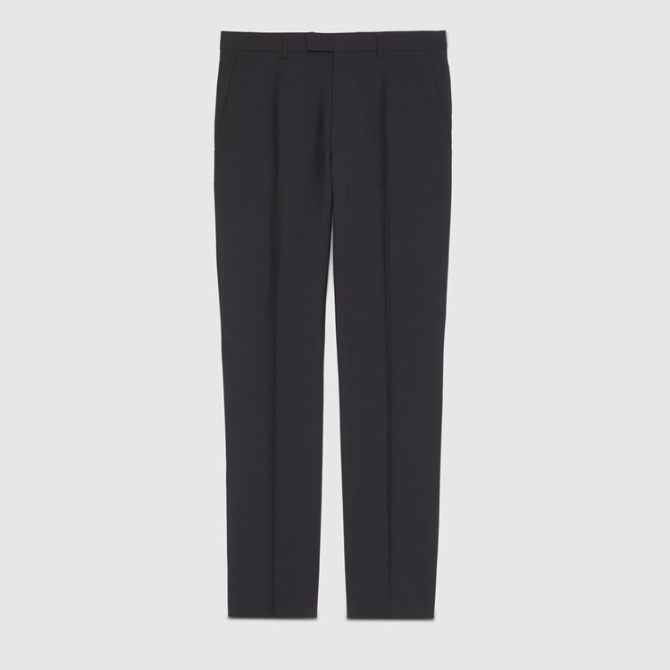 Style 630137 Z596D 4440 A sartorial design introduced For The Pre-Fall 2020, This suit features a single-breasted jacket With notch lapel and coordinating pants in dark blue wool mohair. Part of a streamlined aesthetic that instills a contemporary spirit into Classic Designs and fabrics, Gucci explores a New approach to tailoring.