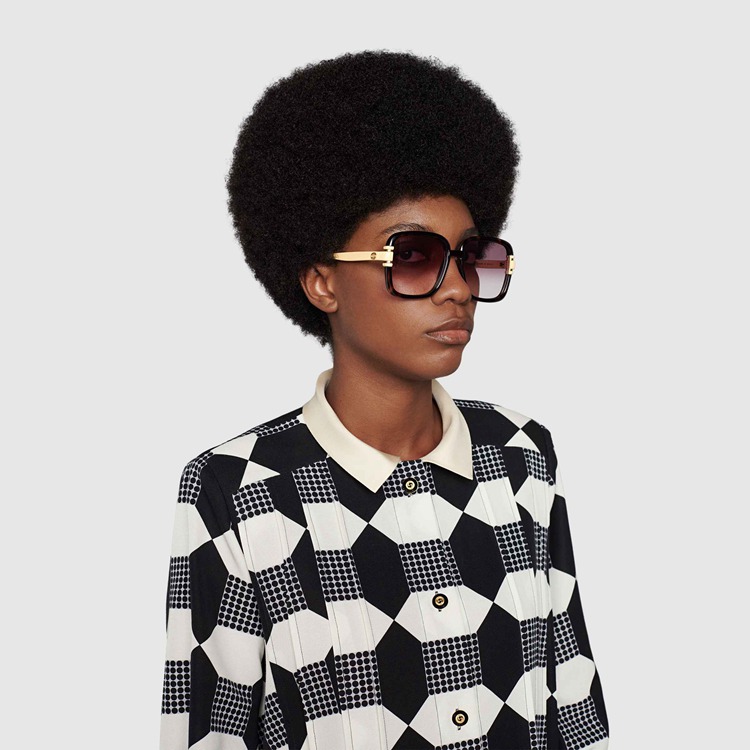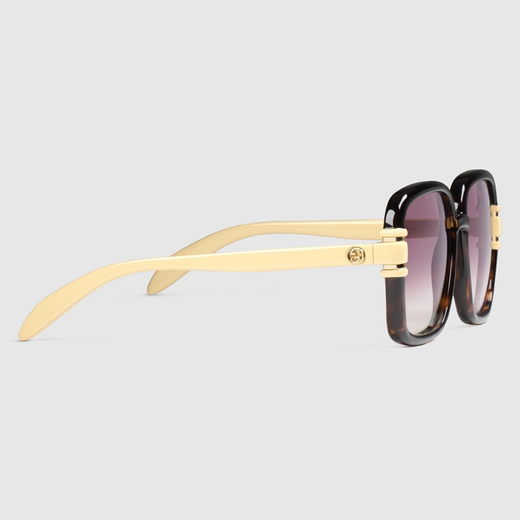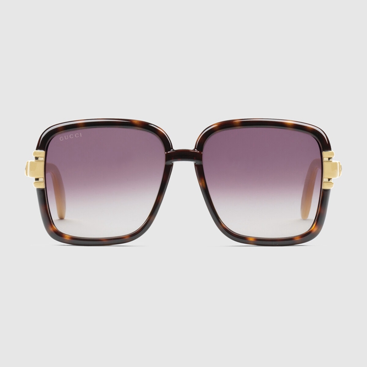 Style 691332 J1691 2350 Crafted from tortoiseshell injection, This pair of sunglasses takes inspiration from ’60s styles With oversized square-frames. A green and red Web detail features on The front—a nod to The House’s equestrian heritage, while The signature Interlocking G appears in gold as a subtle detail on The side.