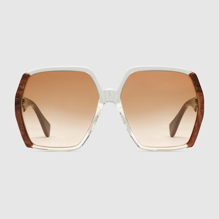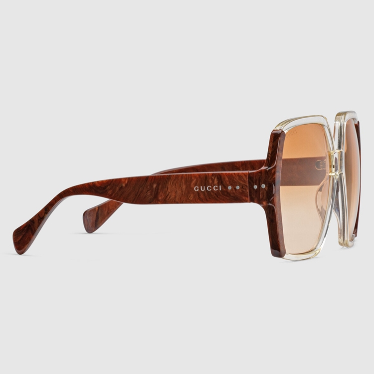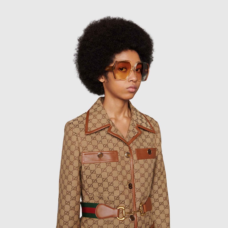 Style 681905 J0740 7275 Taking inspiration from ’70s styles and shapes, These rectangular-frame sunglasses are defined by thick profiles and contrasting colorways. Crafted from acetate, The contrasting yellow and brown frame adds a distinctive design element. A gradient orange lens completes The style With a contemporary touch.