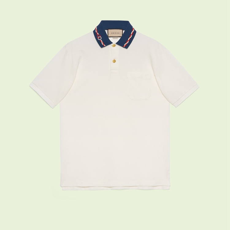 Style 692141 XJD69 9750Defined by its contrast collar and Classic fit, This white stretch cotton piquet polo draws upon Gucci’s history.