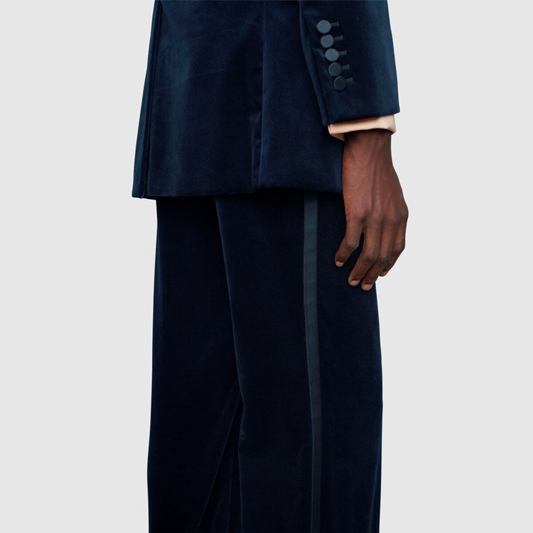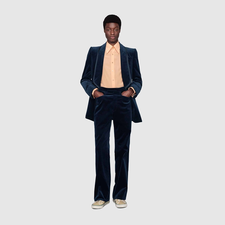 Style 672239 ZAHW3 4520Marking The 100th anniversary of The House, Aria is a celebration of The history of Gucci. Taking cues from The House’s glamorous past, Alessandro Michele reinterprets a number of Tom Ford’s most iconic looks, including a New take on his velvet suiting separates.