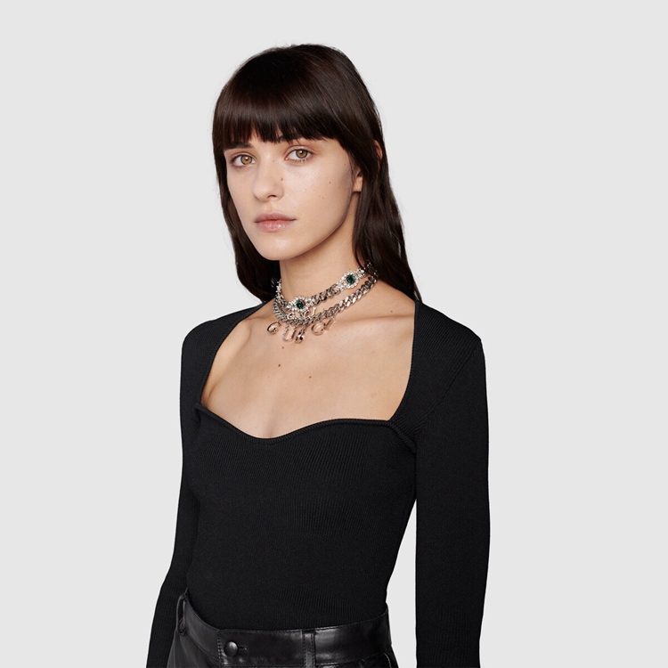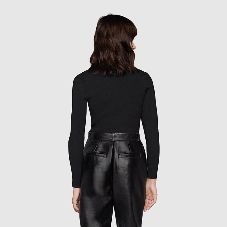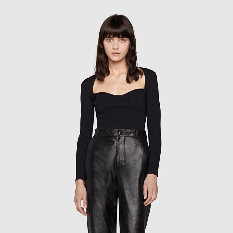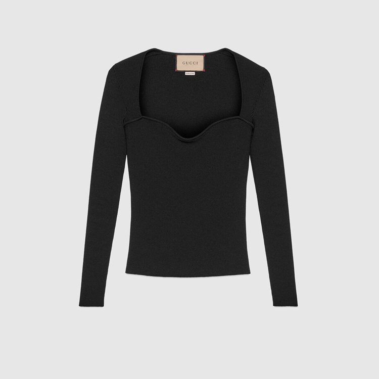 Style 670629 XKB1Q 1000 Combining a sweetheart neckline With a body-con shape, This top is Crafted from black stretch viscose. A mix of colors and transparencies, sleek details and streamlined silhouettes, defines The concept of femininity For The Aria collection.