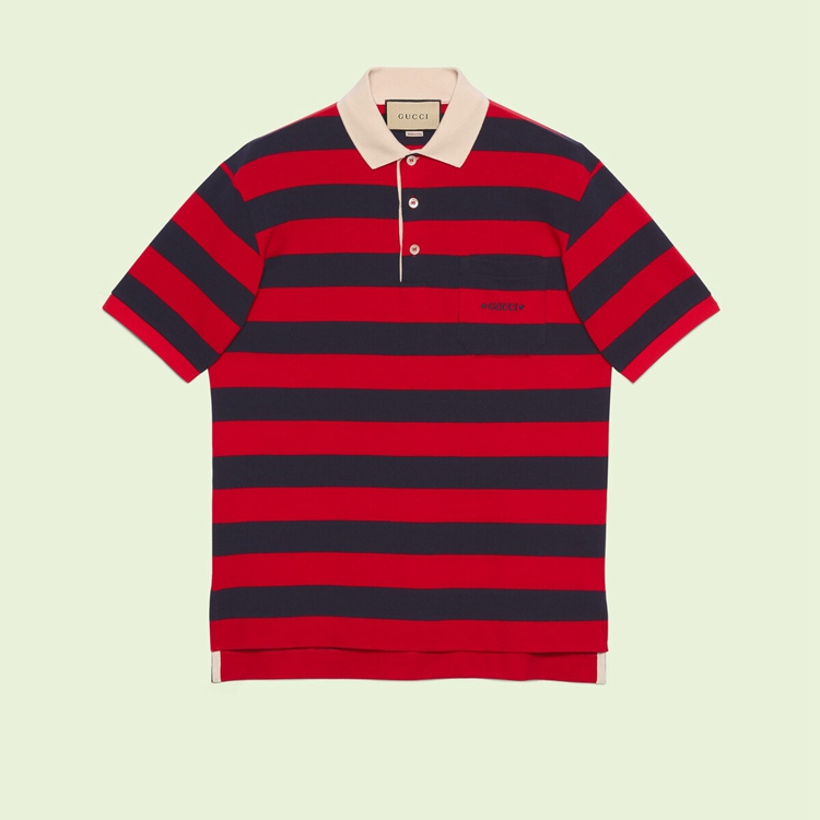 Style 692135 XJD75 6268 The blue and red stripes speak to The nautical feel that permeates Gucci’s collections. Notes of travel and faraway places have always been integrated into The Gucci identity, beginning With Guccio Gucci working at The Savoy Hotel in London—an experience that Inspired him to start The luxury goods brand.