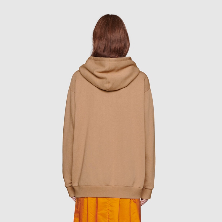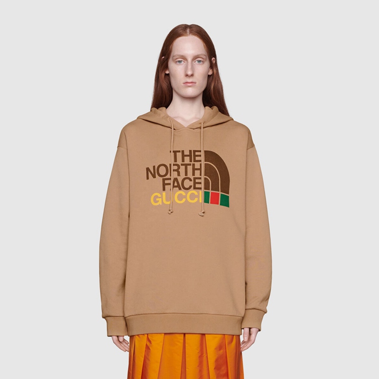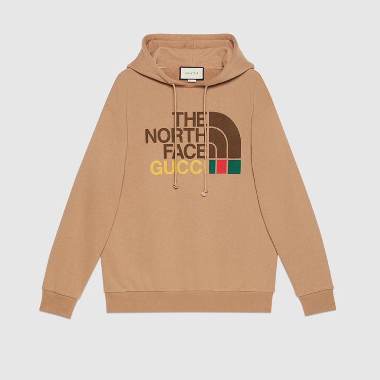 Style 615061 XJDBY 2597 This brown heavy cotton sweatshirt is Part of The North Face x Gucci collection, a collaboration connecting two brands With similar history and values in celebration of The spirit of exploration. The North Face has a rich archive pushing innovation and breaking The rules in creating styles With unique and distinguishing design details. As a brand that has embraced inclusivity, beginning With supporting women to achieve results in a male-dominated pursuit, its mission For its creations is to help adventurers make physical discoveries but also discover their self while doing so. The cross-category collection For men and women includes ready to wear, soft accessories, luggage and shoes.