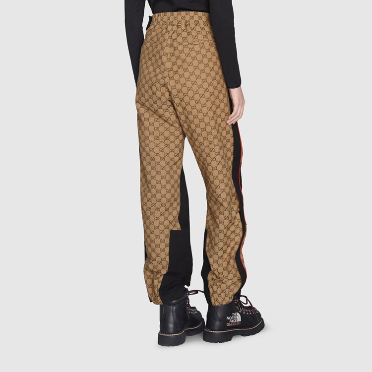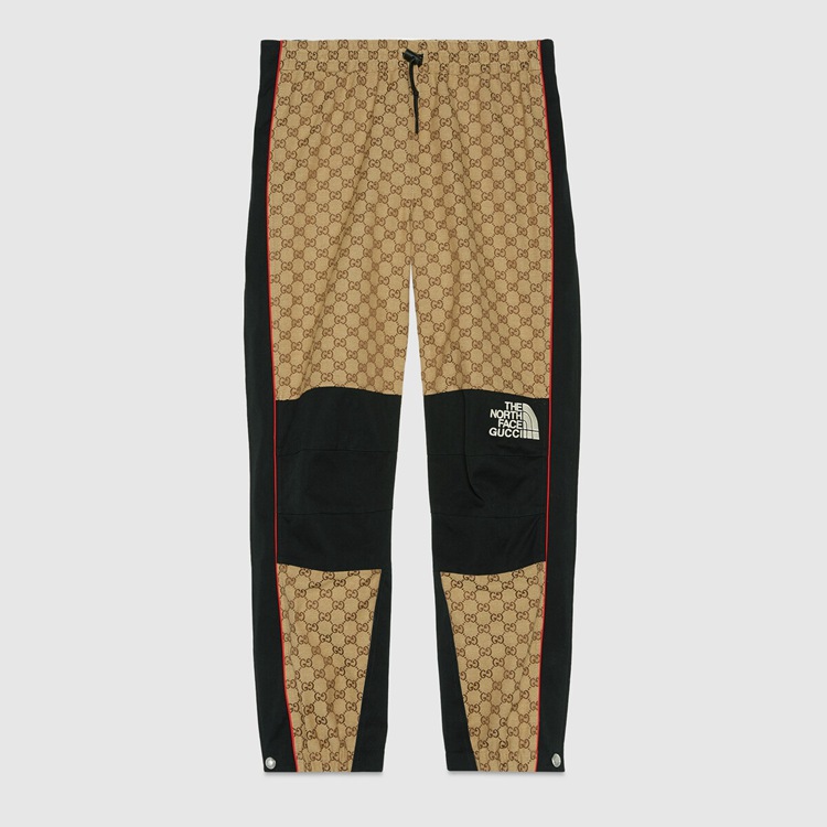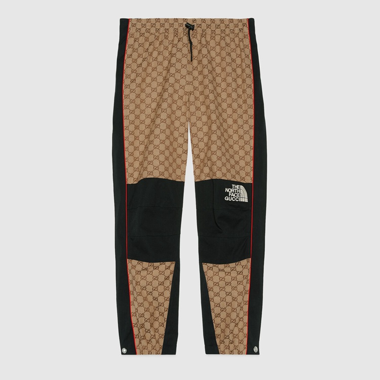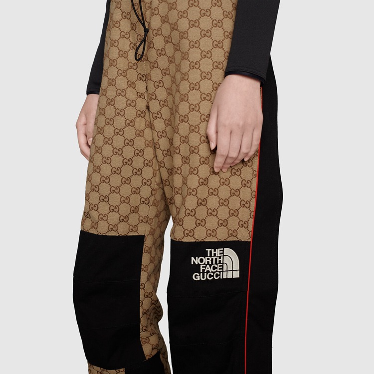 Style 671191 ZAHP0 2184 This GG canvas pant is Part of The North Face x Gucci collection, a collaboration connecting two brands With similar history and values in celebration of The spirit of exploration. The pieces are characterized by a selection of bright colors and prints featuring The North Face x Gucci logo, flowers and woodland- Inspired motifs.
