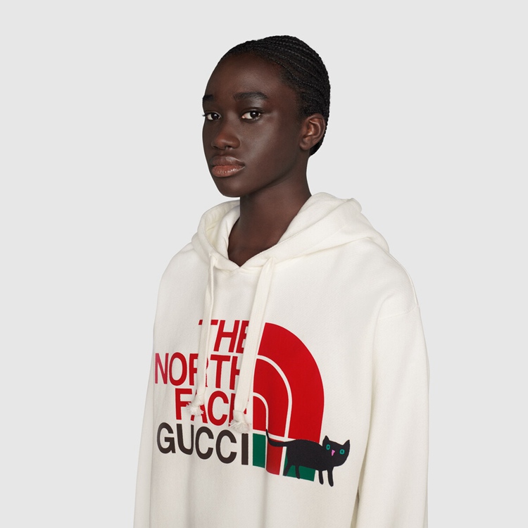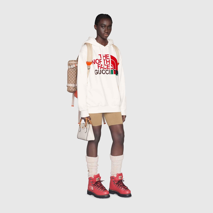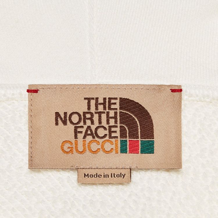 Style 615061 XJDTD 9095 This sweatshirt is Part of The North Face x Gucci collection, a continuation of The collaboration connecting two brands With similar history and values in celebration of The spirit of exploration. The pieces are characterized by a selection of bright colors and prints featuring The North Face x Gucci logo, flowers and woodland- Inspired motifs.